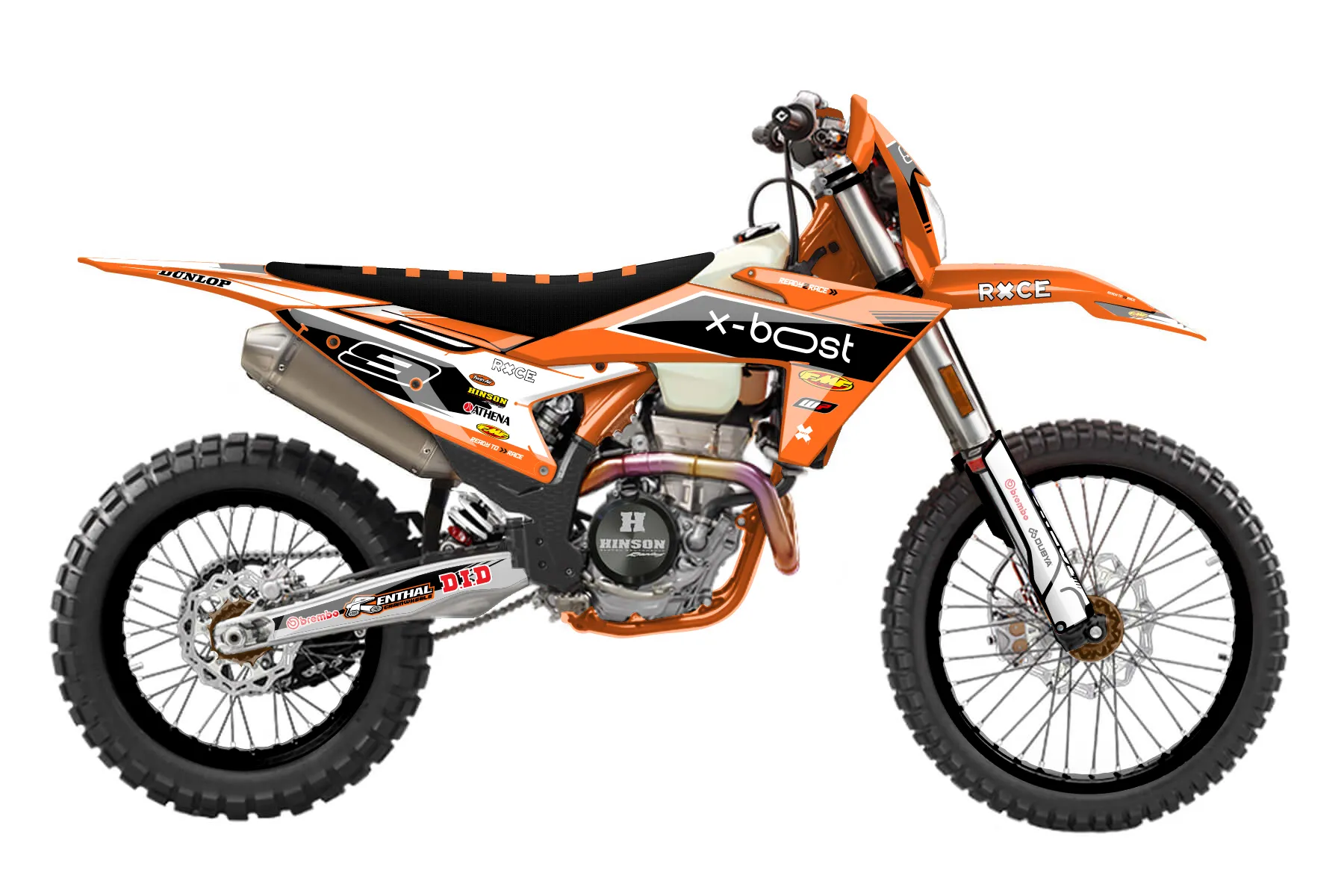 «Proven» — готовый комплект графики серии Untucked для KTM Enduro Graphic Kit KTM EXC-F 350 2024. В комплекте: графика на бак и боковые облицовки, крылья (переднее и заднее), передний щиток, номерные таблички, защита вилки. Материал: ПВХ-винил 80 мкр с холодной ламинацией 300 мкр, общая толщина 380 мкр; покрытие глянцевое или матовое на выбор. Устойчив к UV-излучению, воде, бензину и мойке высокого давления. Клей акриловый на сольвентной основе — постоянный, для гибких пластиков. На простых поверхностях монтируется без нагрева; для сложных изгибов рекомендуем фен. Этот пресет можно заказать как есть или взять за основу в конструкторе: поменять цвета, добавить стартовый номер и свой бренд. Производство — 3–5 рабочих дней, доставка по России СДЭКом или Почтой, по СНГ — курьерскими службами.