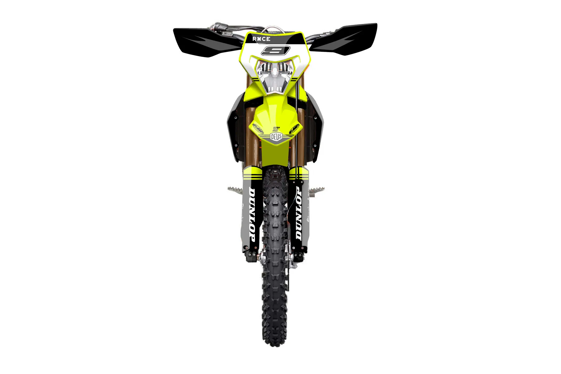 «Ride Neon» — готовый комплект графики серии Untucked для KTM Enduro Graphic Kit KTM EXC-F 350 2024. В комплекте: графика на бак и боковые облицовки, крылья (переднее и заднее), передний щиток, номерные таблички, защита вилки. Материал: ПВХ-винил 80 мкр с холодной ламинацией 300 мкр, общая толщина 380 мкр; покрытие глянцевое или матовое на выбор. Устойчив к UV-излучению, воде, бензину и мойке высокого давления. Клей акриловый на сольвентной основе — постоянный, для гибких пластиков. На простых поверхностях монтируется без нагрева; для сложных изгибов рекомендуем фен. Этот пресет можно заказать как есть или взять за основу в конструкторе: поменять цвета, добавить стартовый номер и свой бренд. Производство — 3–5 рабочих дней, доставка по России СДЭКом или Почтой, по СНГ — курьерскими службами.