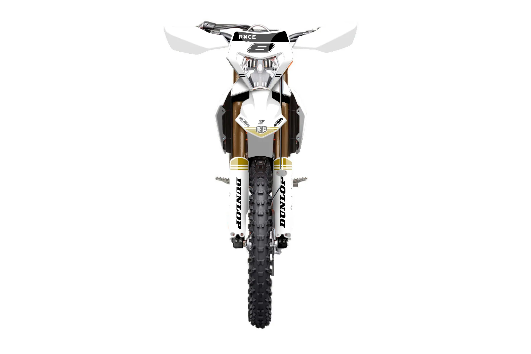 «Sharp» — готовый комплект графики серии Untucked для KTM Enduro Graphic Kit KTM EXC-F 350 2024. В комплекте: графика на бак и боковые облицовки, крылья (переднее и заднее), передний щиток, номерные таблички, защита вилки. Материал: ПВХ-винил 80 мкр с холодной ламинацией 300 мкр, общая толщина 380 мкр; покрытие глянцевое или матовое на выбор. Устойчив к UV-излучению, воде, бензину и мойке высокого давления. Клей акриловый на сольвентной основе — постоянный, для гибких пластиков. На простых поверхностях монтируется без нагрева; для сложных изгибов рекомендуем фен. Этот пресет можно заказать как есть или взять за основу в конструкторе: поменять цвета, добавить стартовый номер и свой бренд. Производство — 3–5 рабочих дней, доставка по России СДЭКом или Почтой, по СНГ — курьерскими службами.
