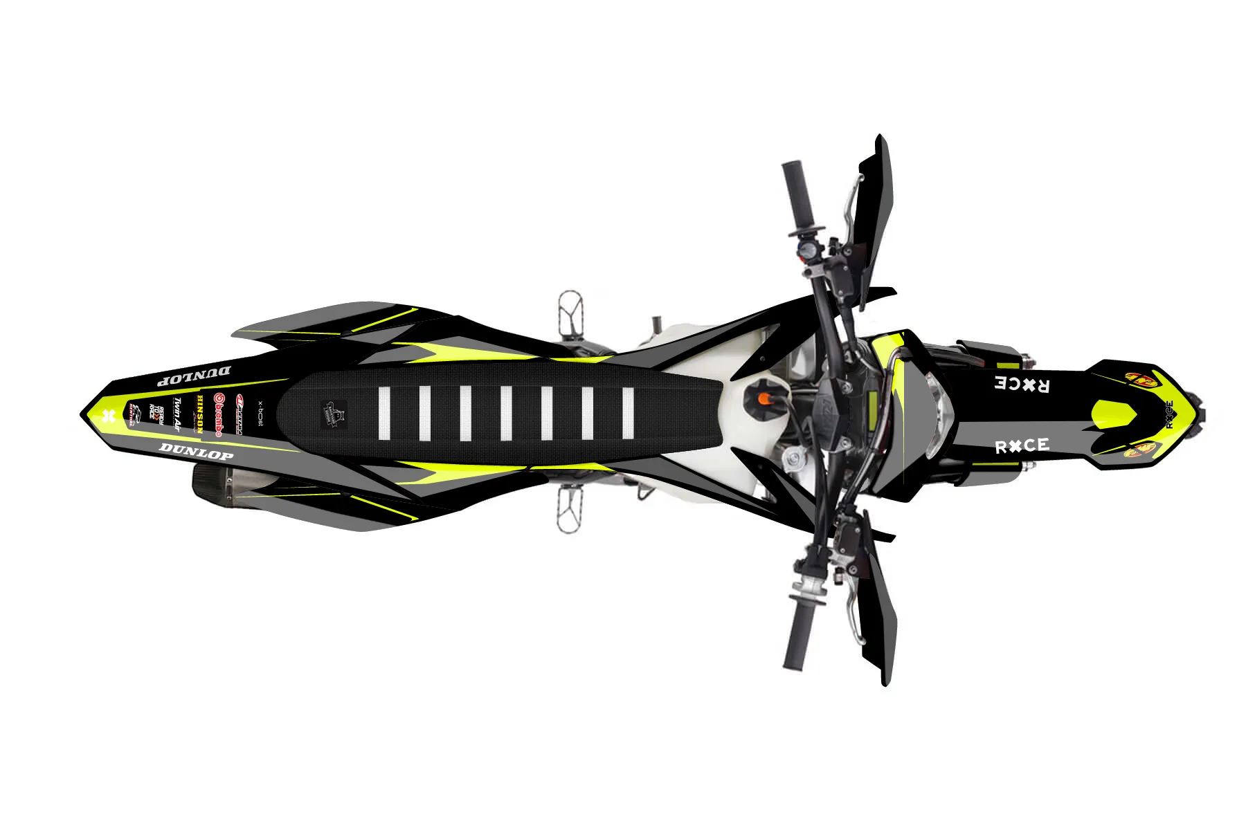 «Form» — готовый комплект графики серии Flow для KTM Enduro Graphic Kit KTM EXC-F 450 2014. В комплекте: графика на бак и боковые облицовки, крылья (переднее и заднее), передний щиток, номерные таблички, защита вилки. Материал: ПВХ-винил 80 мкр с холодной ламинацией 300 мкр, общая толщина 380 мкр; покрытие глянцевое или матовое на выбор. Устойчив к UV-излучению, воде, бензину и мойке высокого давления. Клей акриловый на сольвентной основе — постоянный, для гибких пластиков. На простых поверхностях монтируется без нагрева; для сложных изгибов рекомендуем фен. Этот пресет можно заказать как есть или взять за основу в конструкторе: поменять цвета, добавить стартовый номер и свой бренд. Производство — 3–5 рабочих дней, доставка по России СДЭКом или Почтой, по СНГ — курьерскими службами.