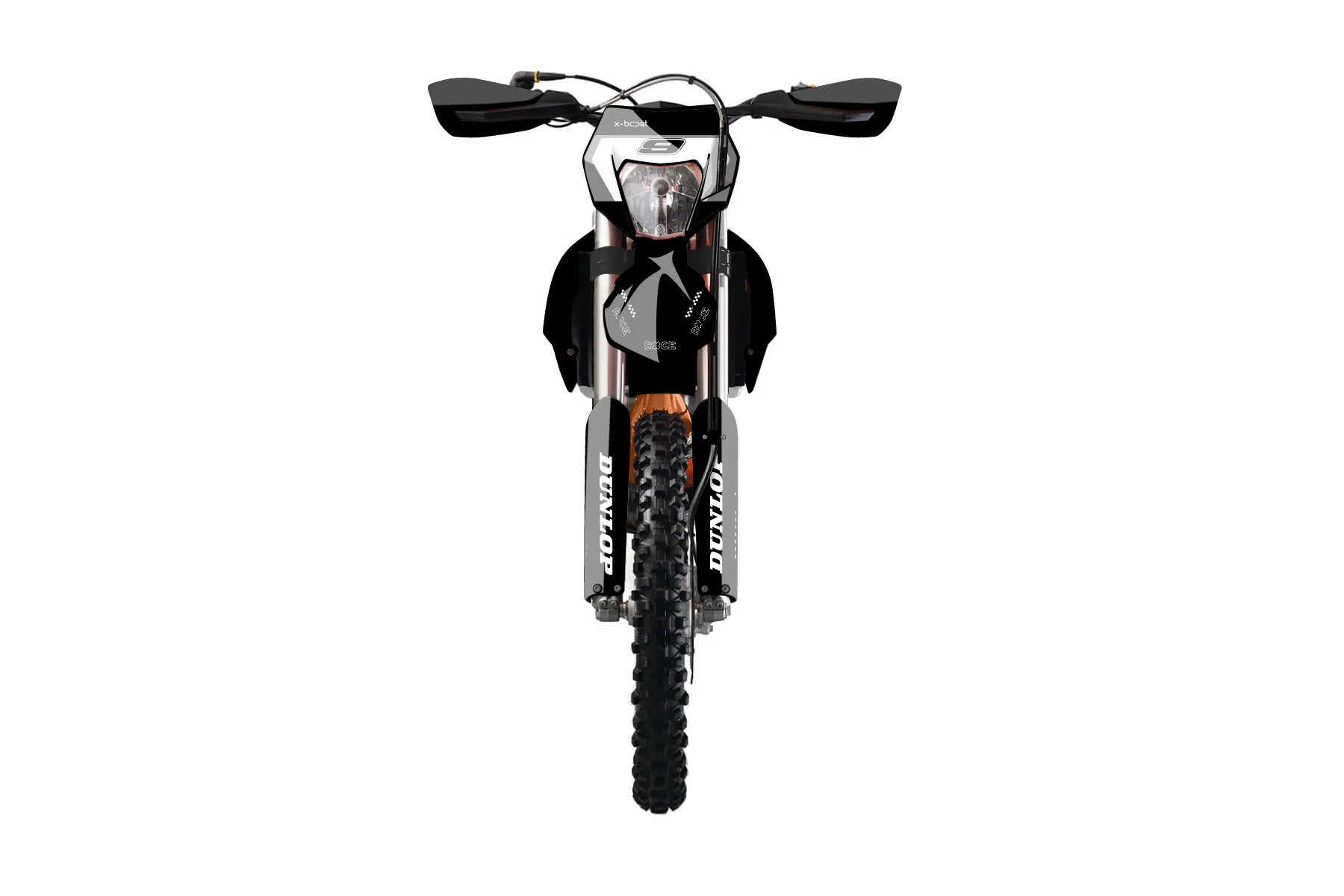«Vector» — готовый комплект графики серии Flow для KTM Enduro Graphic Kit KTM EXC-F 450 2014. В комплекте: графика на бак и боковые облицовки, крылья (переднее и заднее), передний щиток, номерные таблички, защита вилки. Материал: ПВХ-винил 80 мкр с холодной ламинацией 300 мкр, общая толщина 380 мкр; покрытие глянцевое или матовое на выбор. Устойчив к UV-излучению, воде, бензину и мойке высокого давления. Клей акриловый на сольвентной основе — постоянный, для гибких пластиков. На простых поверхностях монтируется без нагрева; для сложных изгибов рекомендуем фен. Этот пресет можно заказать как есть или взять за основу в конструкторе: поменять цвета, добавить стартовый номер и свой бренд. Производство — 3–5 рабочих дней, доставка по России СДЭКом или Почтой, по СНГ — курьерскими службами.