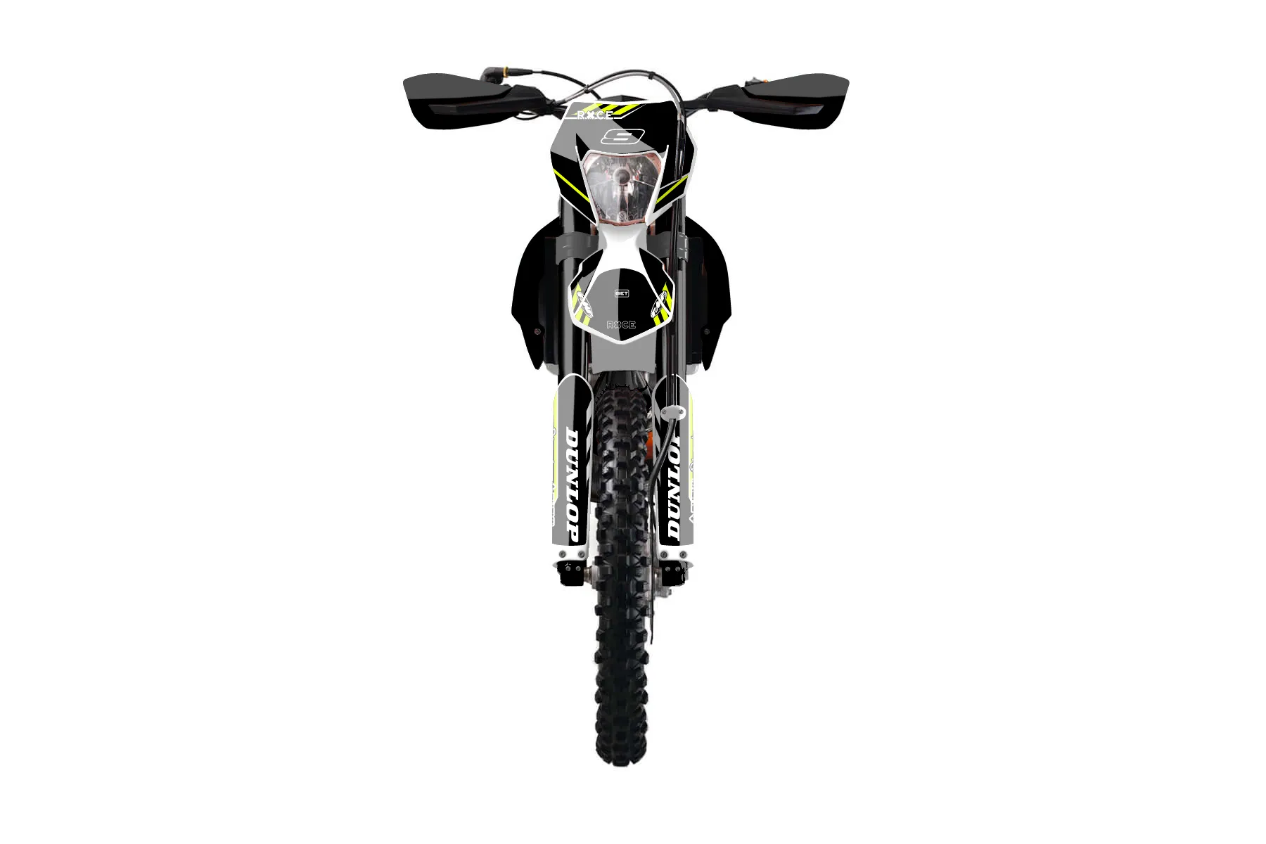 «Daze Fluo» — готовый комплект графики серии Maverick для KTM Enduro Graphic Kit KTM EXC-F 450 2014. В комплекте: графика на бак и боковые облицовки, крылья (переднее и заднее), передний щиток, номерные таблички, защита вилки. Материал: ПВХ-винил 80 мкр с холодной ламинацией 300 мкр, общая толщина 380 мкр; покрытие глянцевое или матовое на выбор. Устойчив к UV-излучению, воде, бензину и мойке высокого давления. Клей акриловый на сольвентной основе — постоянный, для гибких пластиков. На простых поверхностях монтируется без нагрева; для сложных изгибов рекомендуем фен. Этот пресет можно заказать как есть или взять за основу в конструкторе: поменять цвета, добавить стартовый номер и свой бренд. Производство — 3–5 рабочих дней, доставка по России СДЭКом или Почтой, по СНГ — курьерскими службами.