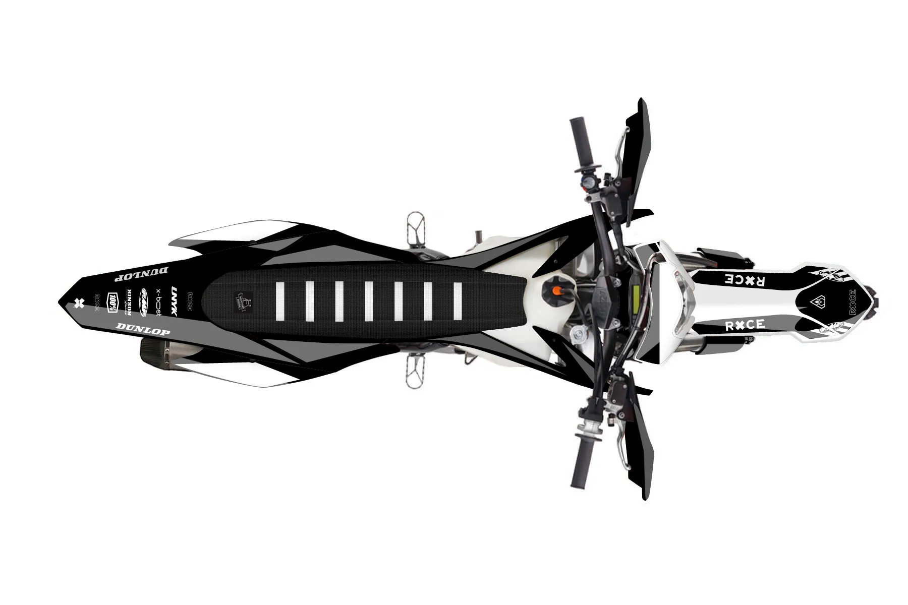 «DeCore» — готовый комплект графики серии Maverick для KTM Enduro Graphic Kit KTM EXC-F 450 2014. В комплекте: графика на бак и боковые облицовки, крылья (переднее и заднее), передний щиток, номерные таблички, защита вилки. Материал: ПВХ-винил 80 мкр с холодной ламинацией 300 мкр, общая толщина 380 мкр; покрытие глянцевое или матовое на выбор. Устойчив к UV-излучению, воде, бензину и мойке высокого давления. Клей акриловый на сольвентной основе — постоянный, для гибких пластиков. На простых поверхностях монтируется без нагрева; для сложных изгибов рекомендуем фен. Этот пресет можно заказать как есть или взять за основу в конструкторе: поменять цвета, добавить стартовый номер и свой бренд. Производство — 3–5 рабочих дней, доставка по России СДЭКом или Почтой, по СНГ — курьерскими службами.