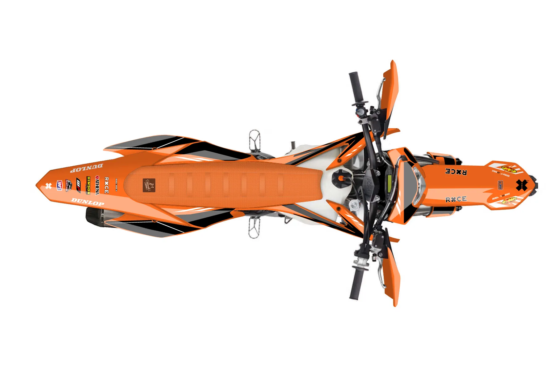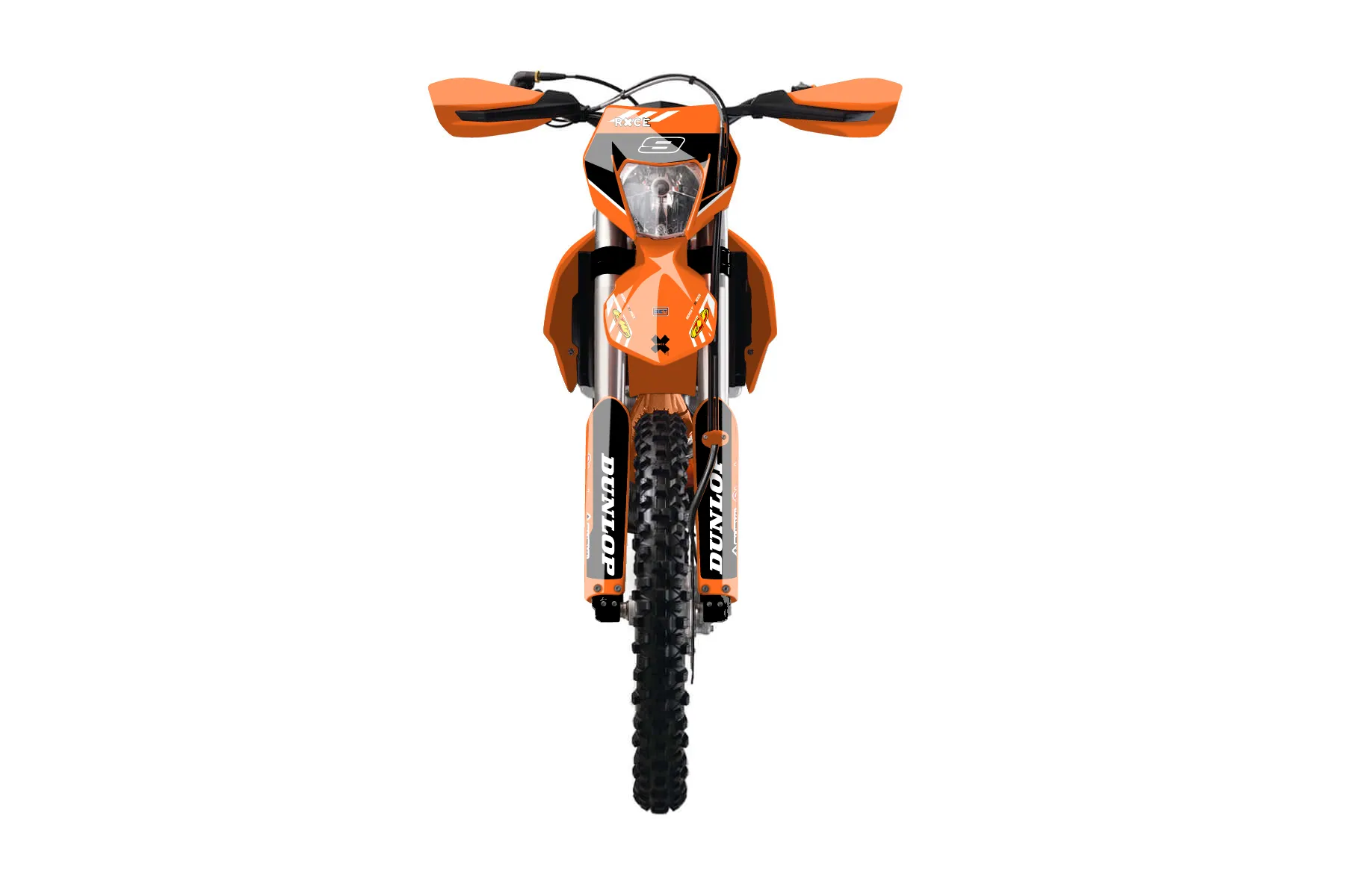 «Express» — готовый комплект графики серии Maverick для KTM Enduro Graphic Kit KTM EXC-F 450 2014. В комплекте: графика на бак и боковые облицовки, крылья (переднее и заднее), передний щиток, номерные таблички, защита вилки. Материал: ПВХ-винил 80 мкр с холодной ламинацией 300 мкр, общая толщина 380 мкр; покрытие глянцевое или матовое на выбор. Устойчив к UV-излучению, воде, бензину и мойке высокого давления. Клей акриловый на сольвентной основе — постоянный, для гибких пластиков. На простых поверхностях монтируется без нагрева; для сложных изгибов рекомендуем фен. Этот пресет можно заказать как есть или взять за основу в конструкторе: поменять цвета, добавить стартовый номер и свой бренд. Производство — 3–5 рабочих дней, доставка по России СДЭКом или Почтой, по СНГ — курьерскими службами.