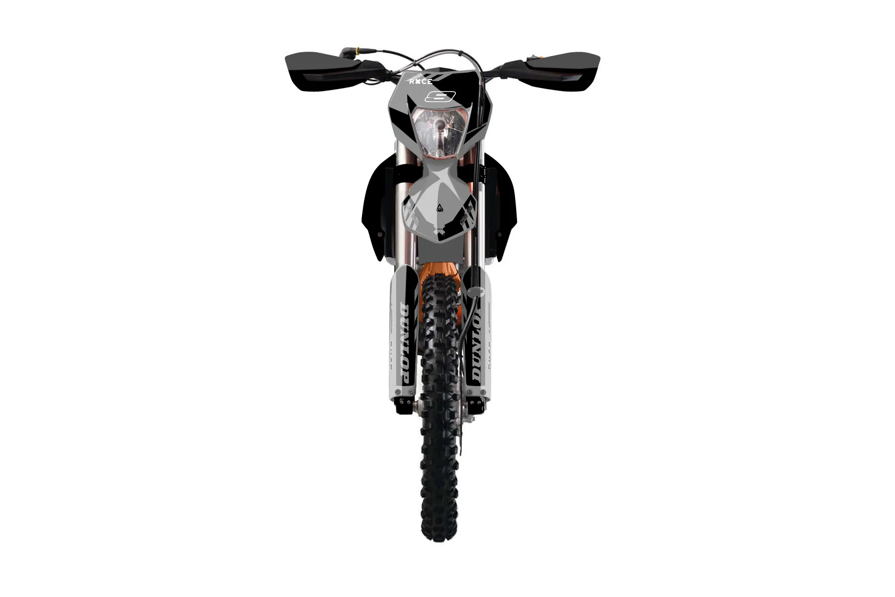 «Grip» — готовый комплект графики серии Maverick для KTM Enduro Graphic Kit KTM EXC-F 450 2014. В комплекте: графика на бак и боковые облицовки, крылья (переднее и заднее), передний щиток, номерные таблички, защита вилки. Материал: ПВХ-винил 80 мкр с холодной ламинацией 300 мкр, общая толщина 380 мкр; покрытие глянцевое или матовое на выбор. Устойчив к UV-излучению, воде, бензину и мойке высокого давления. Клей акриловый на сольвентной основе — постоянный, для гибких пластиков. На простых поверхностях монтируется без нагрева; для сложных изгибов рекомендуем фен. Этот пресет можно заказать как есть или взять за основу в конструкторе: поменять цвета, добавить стартовый номер и свой бренд. Производство — 3–5 рабочих дней, доставка по России СДЭКом или Почтой, по СНГ — курьерскими службами.