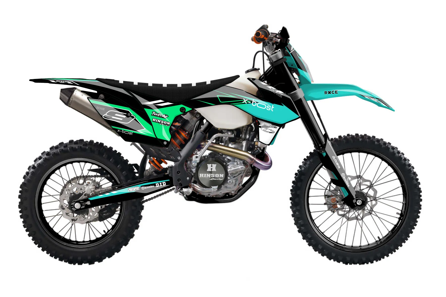 «Refuse» — готовый комплект графики серии Maverick для KTM Enduro Graphic Kit KTM EXC-F 450 2014. В комплекте: графика на бак и боковые облицовки, крылья (переднее и заднее), передний щиток, номерные таблички, защита вилки. Материал: ПВХ-винил 80 мкр с холодной ламинацией 300 мкр, общая толщина 380 мкр; покрытие глянцевое или матовое на выбор. Устойчив к UV-излучению, воде, бензину и мойке высокого давления. Клей акриловый на сольвентной основе — постоянный, для гибких пластиков. На простых поверхностях монтируется без нагрева; для сложных изгибов рекомендуем фен. Этот пресет можно заказать как есть или взять за основу в конструкторе: поменять цвета, добавить стартовый номер и свой бренд. Производство — 3–5 рабочих дней, доставка по России СДЭКом или Почтой, по СНГ — курьерскими службами.