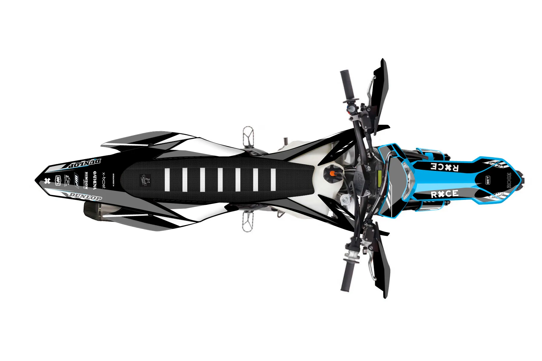 «Swirl» — готовый комплект графики серии Maverick для KTM Enduro Graphic Kit KTM EXC-F 450 2014. В комплекте: графика на бак и боковые облицовки, крылья (переднее и заднее), передний щиток, номерные таблички, защита вилки. Материал: ПВХ-винил 80 мкр с холодной ламинацией 300 мкр, общая толщина 380 мкр; покрытие глянцевое или матовое на выбор. Устойчив к UV-излучению, воде, бензину и мойке высокого давления. Клей акриловый на сольвентной основе — постоянный, для гибких пластиков. На простых поверхностях монтируется без нагрева; для сложных изгибов рекомендуем фен. Этот пресет можно заказать как есть или взять за основу в конструкторе: поменять цвета, добавить стартовый номер и свой бренд. Производство — 3–5 рабочих дней, доставка по России СДЭКом или Почтой, по СНГ — курьерскими службами.