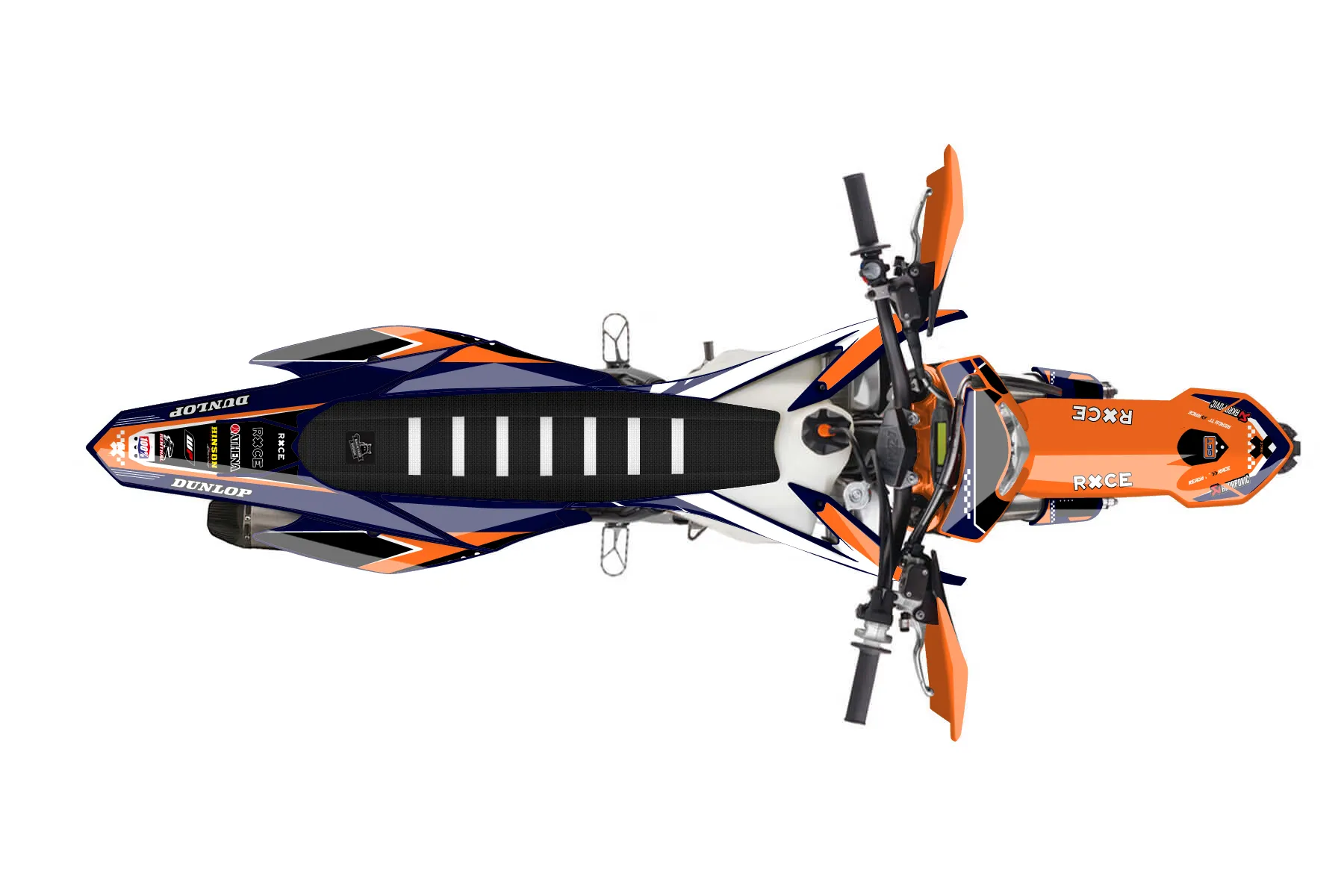 «Rage» — готовый комплект графики серии Staple для KTM Enduro Graphic Kit KTM EXC-F 450 2014. В комплекте: графика на бак и боковые облицовки, крылья (переднее и заднее), передний щиток, номерные таблички, защита вилки. Материал: ПВХ-винил 80 мкр с холодной ламинацией 300 мкр, общая толщина 380 мкр; покрытие глянцевое или матовое на выбор. Устойчив к UV-излучению, воде, бензину и мойке высокого давления. Клей акриловый на сольвентной основе — постоянный, для гибких пластиков. На простых поверхностях монтируется без нагрева; для сложных изгибов рекомендуем фен. Этот пресет можно заказать как есть или взять за основу в конструкторе: поменять цвета, добавить стартовый номер и свой бренд. Производство — 3–5 рабочих дней, доставка по России СДЭКом или Почтой, по СНГ — курьерскими службами.