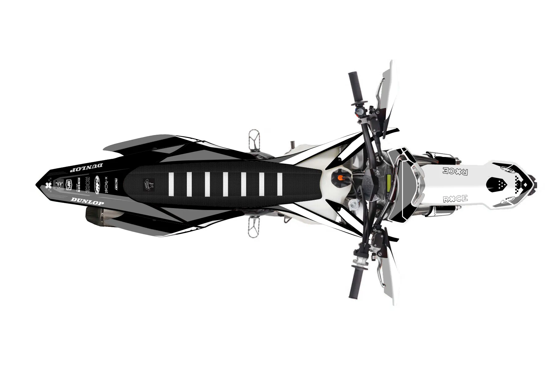 «Rough» — готовый комплект графики серии Staple для KTM Enduro Graphic Kit KTM EXC-F 450 2014. В комплекте: графика на бак и боковые облицовки, крылья (переднее и заднее), передний щиток, номерные таблички, защита вилки. Материал: ПВХ-винил 80 мкр с холодной ламинацией 300 мкр, общая толщина 380 мкр; покрытие глянцевое или матовое на выбор. Устойчив к UV-излучению, воде, бензину и мойке высокого давления. Клей акриловый на сольвентной основе — постоянный, для гибких пластиков. На простых поверхностях монтируется без нагрева; для сложных изгибов рекомендуем фен. Этот пресет можно заказать как есть или взять за основу в конструкторе: поменять цвета, добавить стартовый номер и свой бренд. Производство — 3–5 рабочих дней, доставка по России СДЭКом или Почтой, по СНГ — курьерскими службами.