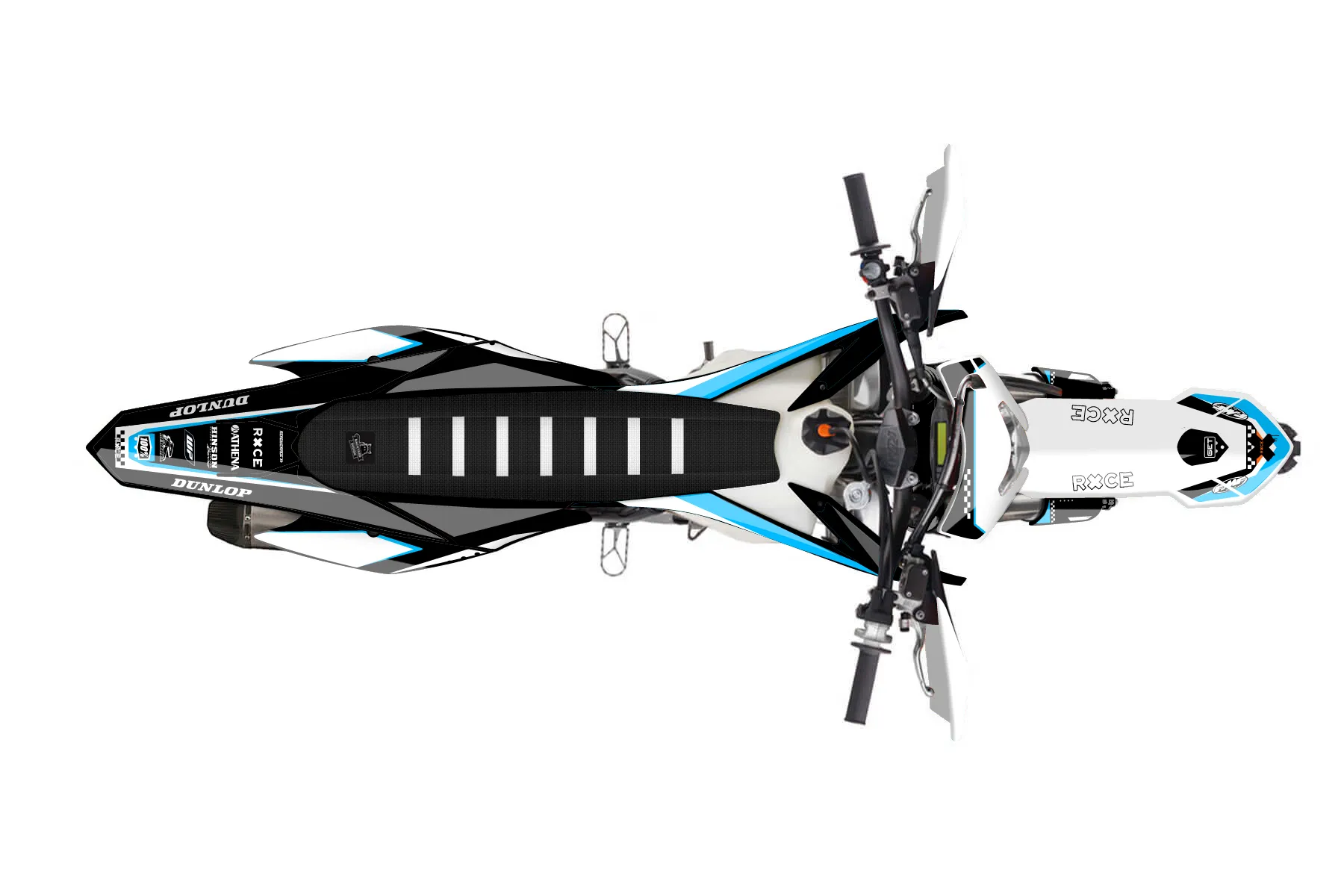 «Rule» — готовый комплект графики серии Staple для KTM Enduro Graphic Kit KTM EXC-F 450 2014. В комплекте: графика на бак и боковые облицовки, крылья (переднее и заднее), передний щиток, номерные таблички, защита вилки. Материал: ПВХ-винил 80 мкр с холодной ламинацией 300 мкр, общая толщина 380 мкр; покрытие глянцевое или матовое на выбор. Устойчив к UV-излучению, воде, бензину и мойке высокого давления. Клей акриловый на сольвентной основе — постоянный, для гибких пластиков. На простых поверхностях монтируется без нагрева; для сложных изгибов рекомендуем фен. Этот пресет можно заказать как есть или взять за основу в конструкторе: поменять цвета, добавить стартовый номер и свой бренд. Производство — 3–5 рабочих дней, доставка по России СДЭКом или Почтой, по СНГ — курьерскими службами.
