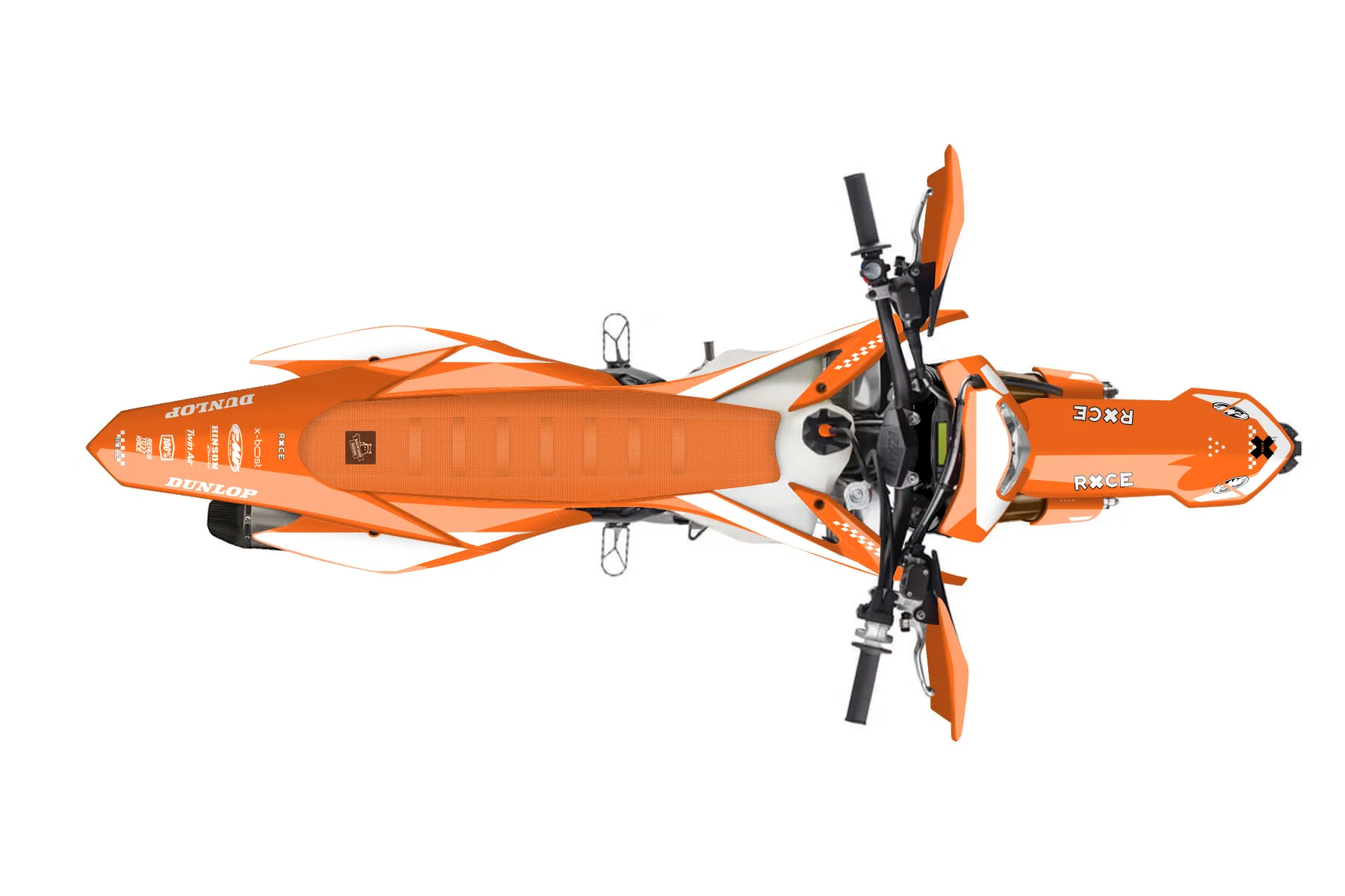 «Type» — готовый комплект графики серии Staple для KTM Enduro Graphic Kit KTM EXC-F 450 2014. В комплекте: графика на бак и боковые облицовки, крылья (переднее и заднее), передний щиток, номерные таблички, защита вилки. Материал: ПВХ-винил 80 мкр с холодной ламинацией 300 мкр, общая толщина 380 мкр; покрытие глянцевое или матовое на выбор. Устойчив к UV-излучению, воде, бензину и мойке высокого давления. Клей акриловый на сольвентной основе — постоянный, для гибких пластиков. На простых поверхностях монтируется без нагрева; для сложных изгибов рекомендуем фен. Этот пресет можно заказать как есть или взять за основу в конструкторе: поменять цвета, добавить стартовый номер и свой бренд. Производство — 3–5 рабочих дней, доставка по России СДЭКом или Почтой, по СНГ — курьерскими службами.