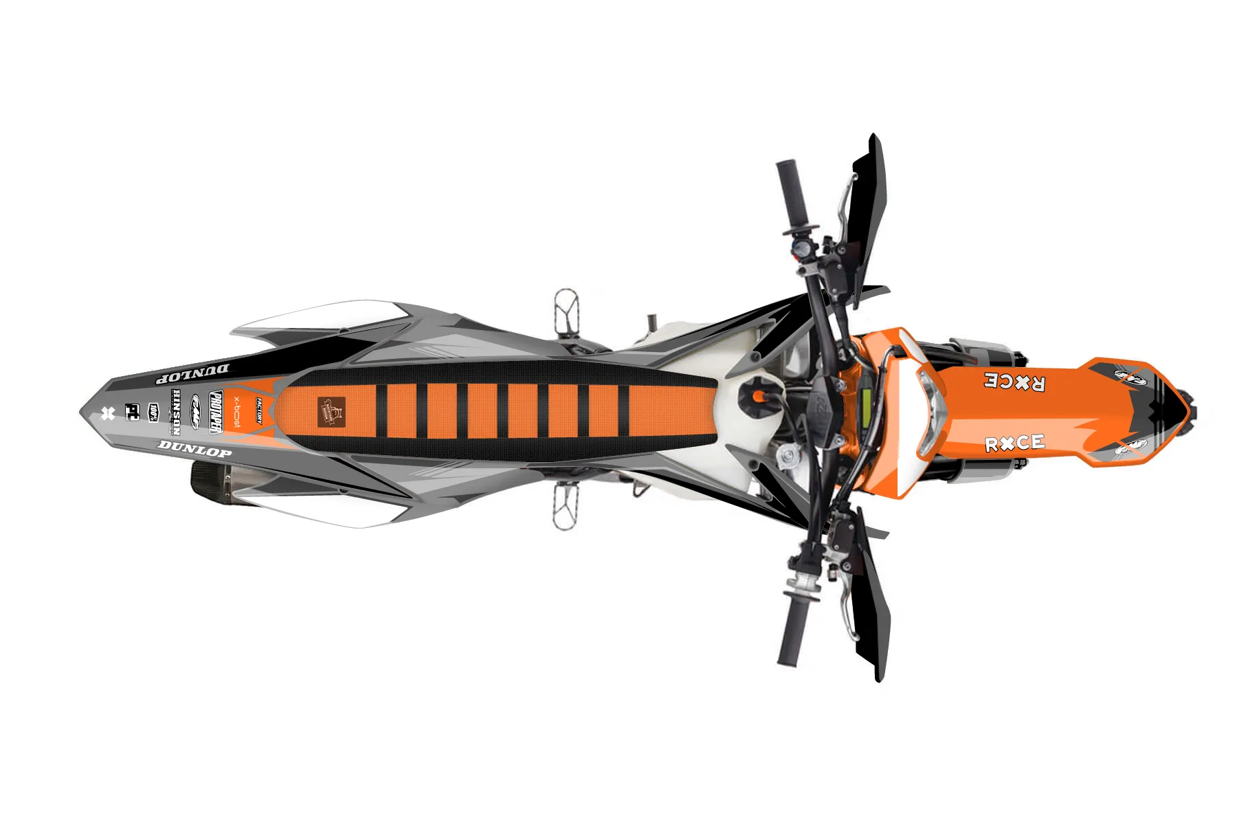 «Satisfied» — готовый комплект графики серии Untucked для KTM Enduro Graphic Kit KTM EXC-F 450 2014. В комплекте: графика на бак и боковые облицовки, крылья (переднее и заднее), передний щиток, номерные таблички, защита вилки. Материал: ПВХ-винил 80 мкр с холодной ламинацией 300 мкр, общая толщина 380 мкр; покрытие глянцевое или матовое на выбор. Устойчив к UV-излучению, воде, бензину и мойке высокого давления. Клей акриловый на сольвентной основе — постоянный, для гибких пластиков. На простых поверхностях монтируется без нагрева; для сложных изгибов рекомендуем фен. Этот пресет можно заказать как есть или взять за основу в конструкторе: поменять цвета, добавить стартовый номер и свой бренд. Производство — 3–5 рабочих дней, доставка по России СДЭКом или Почтой, по СНГ — курьерскими службами.