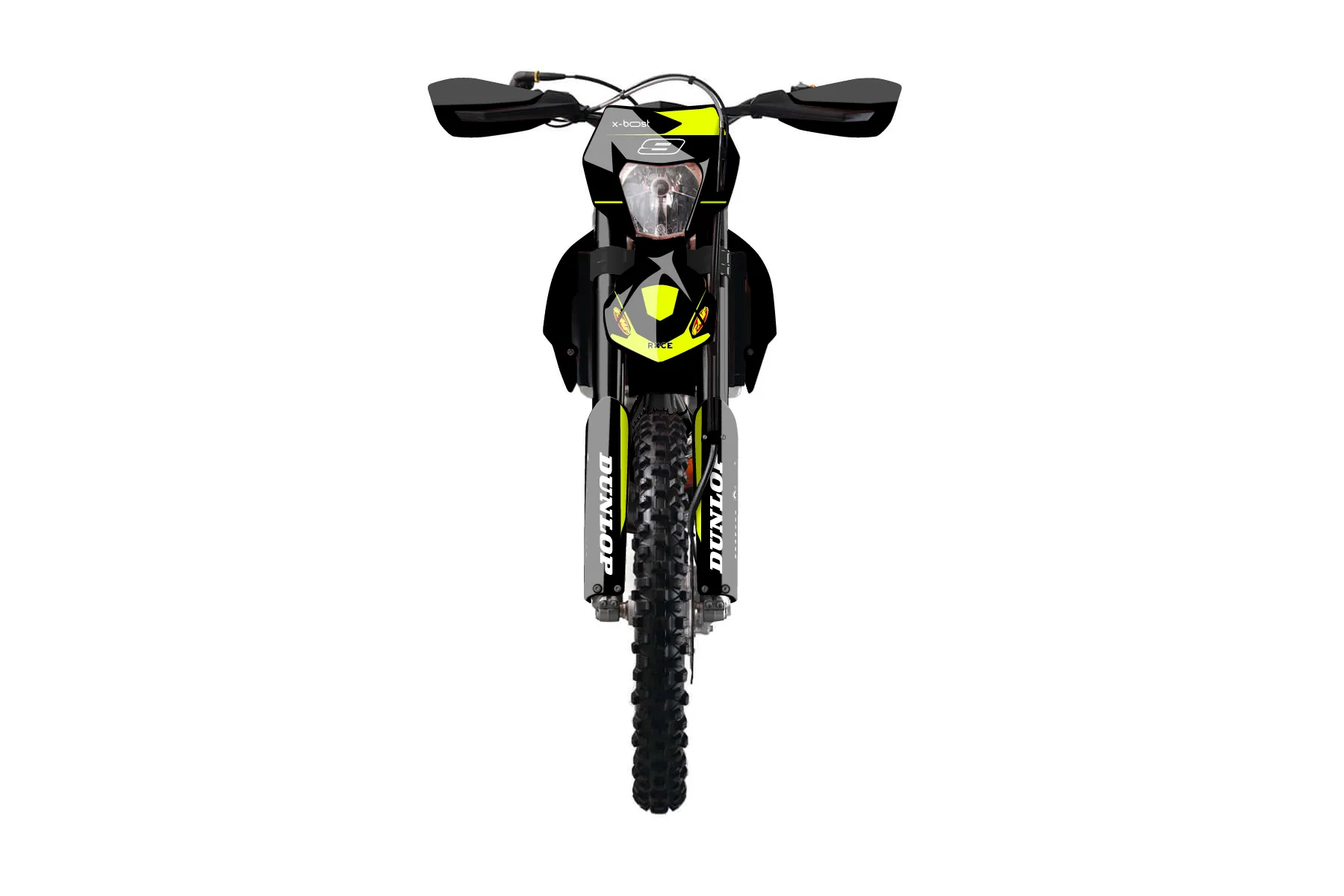«Form» — готовый комплект графики серии Flow для KTM Enduro Graphic Kit KTM EXC-F 450 2016. В комплекте: графика на бак и боковые облицовки, крылья (переднее и заднее), передний щиток, номерные таблички, защита вилки. Материал: ПВХ-винил 80 мкр с холодной ламинацией 300 мкр, общая толщина 380 мкр; покрытие глянцевое или матовое на выбор. Устойчив к UV-излучению, воде, бензину и мойке высокого давления. Клей акриловый на сольвентной основе — постоянный, для гибких пластиков. На простых поверхностях монтируется без нагрева; для сложных изгибов рекомендуем фен. Этот пресет можно заказать как есть или взять за основу в конструкторе: поменять цвета, добавить стартовый номер и свой бренд. Производство — 3–5 рабочих дней, доставка по России СДЭКом или Почтой, по СНГ — курьерскими службами.