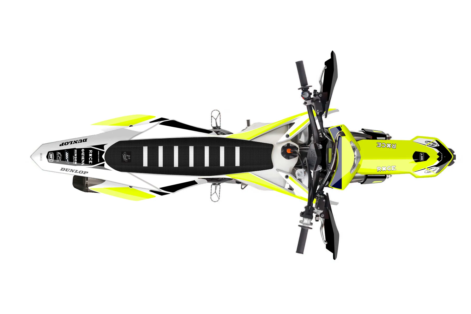 «Rise Fluo» — готовый комплект графики серии Flow для KTM Enduro Graphic Kit KTM EXC-F 450 2016. В комплекте: графика на бак и боковые облицовки, крылья (переднее и заднее), передний щиток, номерные таблички, защита вилки. Материал: ПВХ-винил 80 мкр с холодной ламинацией 300 мкр, общая толщина 380 мкр; покрытие глянцевое или матовое на выбор. Устойчив к UV-излучению, воде, бензину и мойке высокого давления. Клей акриловый на сольвентной основе — постоянный, для гибких пластиков. На простых поверхностях монтируется без нагрева; для сложных изгибов рекомендуем фен. Этот пресет можно заказать как есть или взять за основу в конструкторе: поменять цвета, добавить стартовый номер и свой бренд. Производство — 3–5 рабочих дней, доставка по России СДЭКом или Почтой, по СНГ — курьерскими службами.