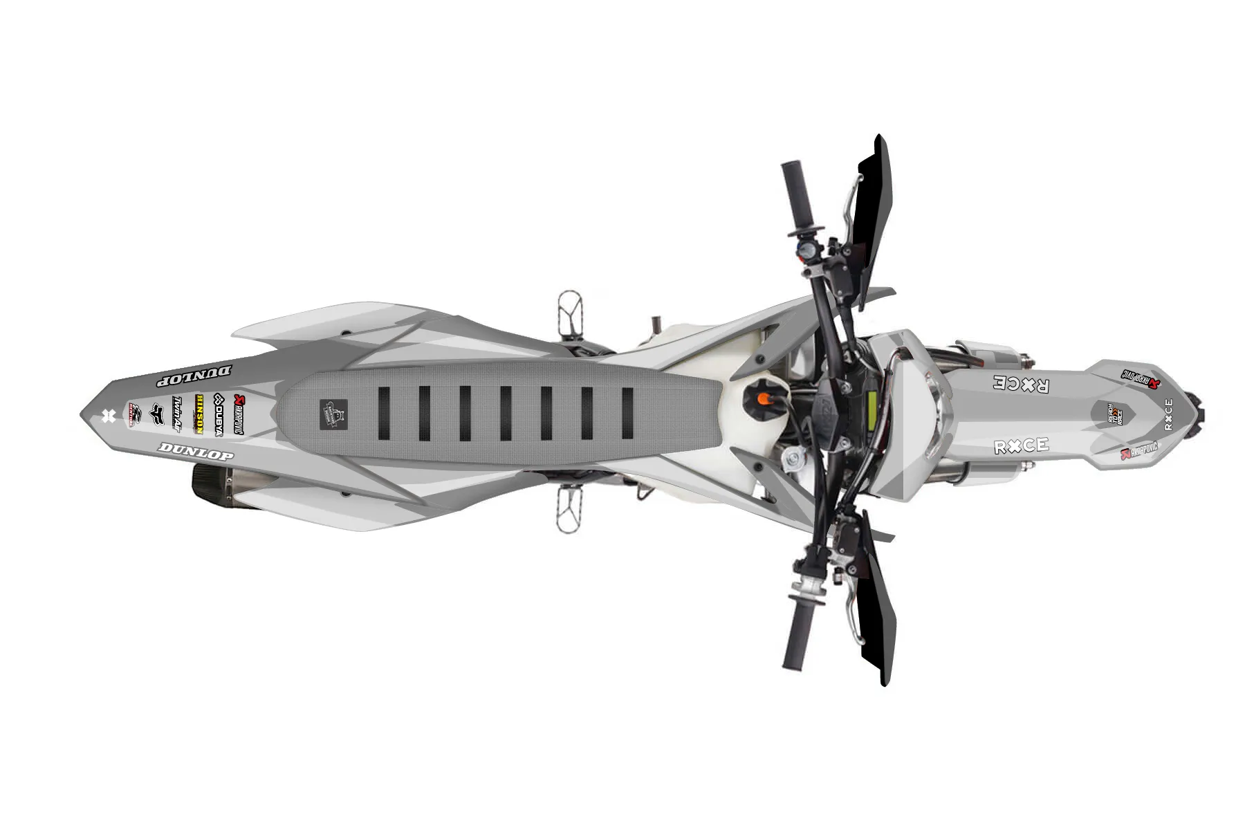 «Simple» — готовый комплект графики серии Flow для KTM Enduro Graphic Kit KTM EXC-F 450 2016. В комплекте: графика на бак и боковые облицовки, крылья (переднее и заднее), передний щиток, номерные таблички, защита вилки. Материал: ПВХ-винил 80 мкр с холодной ламинацией 300 мкр, общая толщина 380 мкр; покрытие глянцевое или матовое на выбор. Устойчив к UV-излучению, воде, бензину и мойке высокого давления. Клей акриловый на сольвентной основе — постоянный, для гибких пластиков. На простых поверхностях монтируется без нагрева; для сложных изгибов рекомендуем фен. Этот пресет можно заказать как есть или взять за основу в конструкторе: поменять цвета, добавить стартовый номер и свой бренд. Производство — 3–5 рабочих дней, доставка по России СДЭКом или Почтой, по СНГ — курьерскими службами.