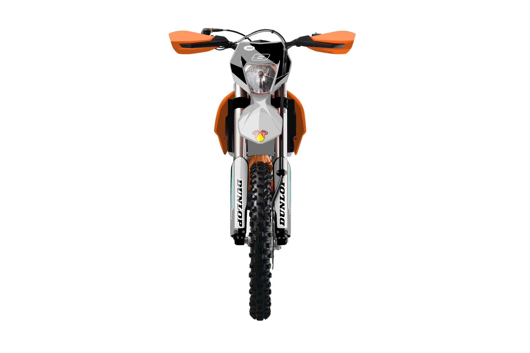 «Fuse» — готовый комплект графики серии Maverick для KTM Enduro Graphic Kit KTM EXC-F 450 2016. В комплекте: графика на бак и боковые облицовки, крылья (переднее и заднее), передний щиток, номерные таблички, защита вилки. Материал: ПВХ-винил 80 мкр с холодной ламинацией 300 мкр, общая толщина 380 мкр; покрытие глянцевое или матовое на выбор. Устойчив к UV-излучению, воде, бензину и мойке высокого давления. Клей акриловый на сольвентной основе — постоянный, для гибких пластиков. На простых поверхностях монтируется без нагрева; для сложных изгибов рекомендуем фен. Этот пресет можно заказать как есть или взять за основу в конструкторе: поменять цвета, добавить стартовый номер и свой бренд. Производство — 3–5 рабочих дней, доставка по России СДЭКом или Почтой, по СНГ — курьерскими службами.