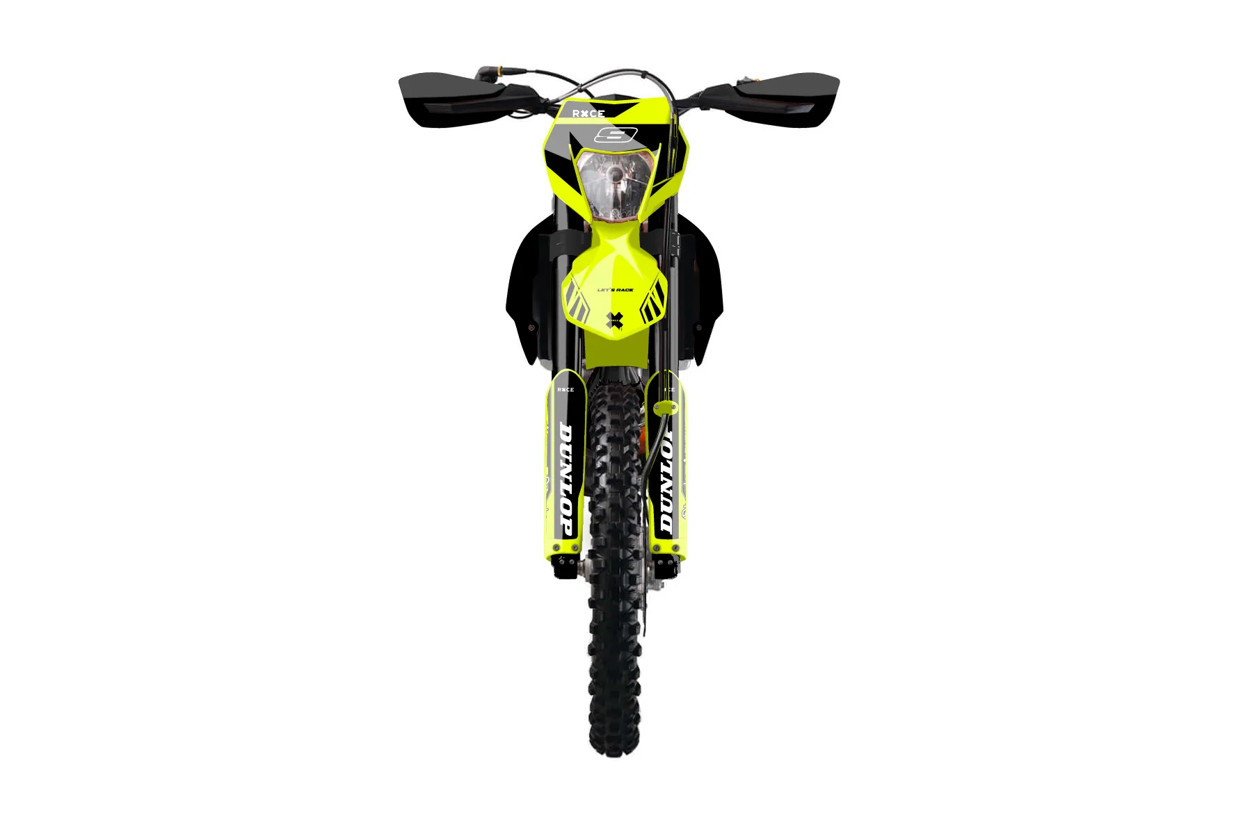 «Kitted Neon» — готовый комплект графики серии Maverick для KTM Enduro Graphic Kit KTM EXC-F 450 2016. В комплекте: графика на бак и боковые облицовки, крылья (переднее и заднее), передний щиток, номерные таблички, защита вилки. Материал: ПВХ-винил 80 мкр с холодной ламинацией 300 мкр, общая толщина 380 мкр; покрытие глянцевое или матовое на выбор. Устойчив к UV-излучению, воде, бензину и мойке высокого давления. Клей акриловый на сольвентной основе — постоянный, для гибких пластиков. На простых поверхностях монтируется без нагрева; для сложных изгибов рекомендуем фен. Этот пресет можно заказать как есть или взять за основу в конструкторе: поменять цвета, добавить стартовый номер и свой бренд. Производство — 3–5 рабочих дней, доставка по России СДЭКом или Почтой, по СНГ — курьерскими службами.