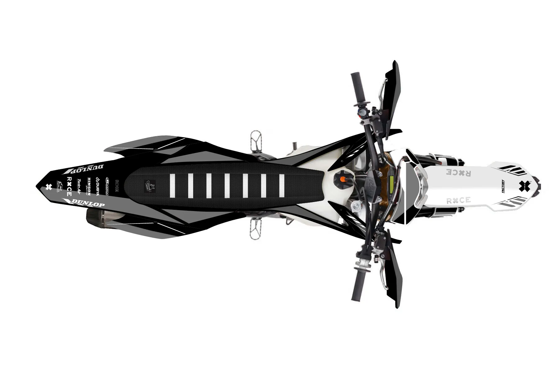 «Stew» — готовый комплект графики серии Maverick для KTM Enduro Graphic Kit KTM EXC-F 450 2016. В комплекте: графика на бак и боковые облицовки, крылья (переднее и заднее), передний щиток, номерные таблички, защита вилки. Материал: ПВХ-винил 80 мкр с холодной ламинацией 300 мкр, общая толщина 380 мкр; покрытие глянцевое или матовое на выбор. Устойчив к UV-излучению, воде, бензину и мойке высокого давления. Клей акриловый на сольвентной основе — постоянный, для гибких пластиков. На простых поверхностях монтируется без нагрева; для сложных изгибов рекомендуем фен. Этот пресет можно заказать как есть или взять за основу в конструкторе: поменять цвета, добавить стартовый номер и свой бренд. Производство — 3–5 рабочих дней, доставка по России СДЭКом или Почтой, по СНГ — курьерскими службами.