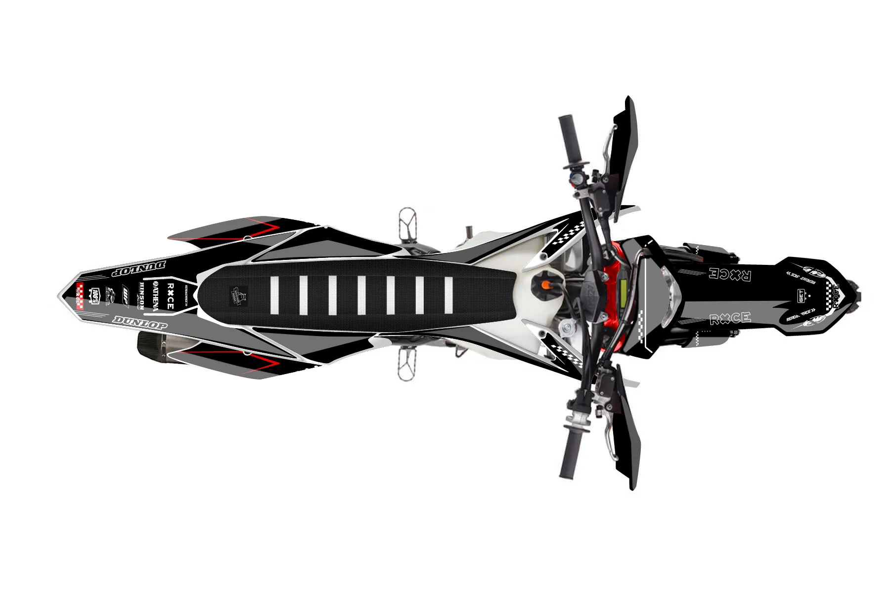 «Tack» — готовый комплект графики серии Staple для KTM Enduro Graphic Kit KTM EXC-F 450 2016. В комплекте: графика на бак и боковые облицовки, крылья (переднее и заднее), передний щиток, номерные таблички, защита вилки. Материал: ПВХ-винил 80 мкр с холодной ламинацией 300 мкр, общая толщина 380 мкр; покрытие глянцевое или матовое на выбор. Устойчив к UV-излучению, воде, бензину и мойке высокого давления. Клей акриловый на сольвентной основе — постоянный, для гибких пластиков. На простых поверхностях монтируется без нагрева; для сложных изгибов рекомендуем фен. Этот пресет можно заказать как есть или взять за основу в конструкторе: поменять цвета, добавить стартовый номер и свой бренд. Производство — 3–5 рабочих дней, доставка по России СДЭКом или Почтой, по СНГ — курьерскими службами.