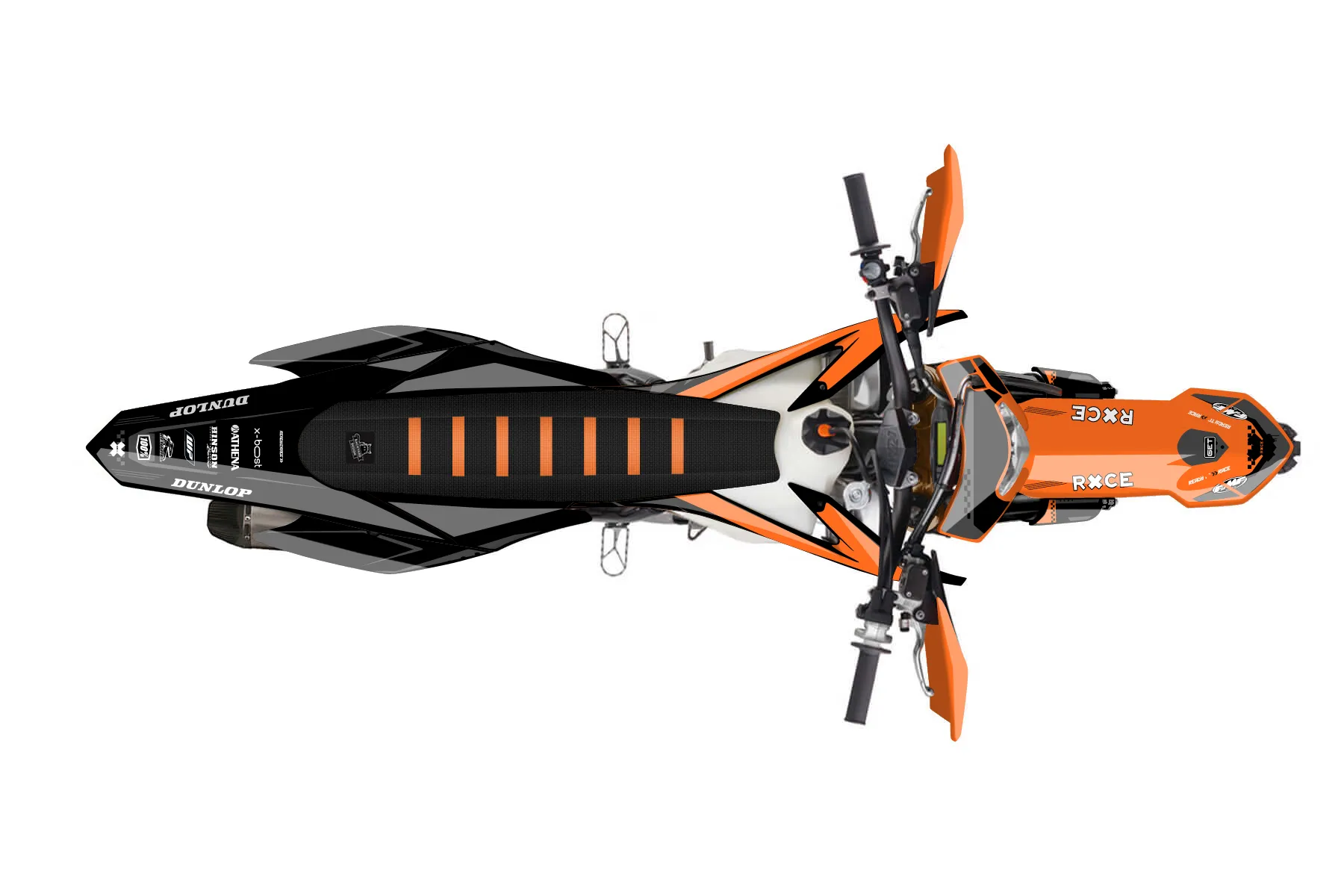 «Tide» — готовый комплект графики серии Staple для KTM Enduro Graphic Kit KTM EXC-F 450 2016. В комплекте: графика на бак и боковые облицовки, крылья (переднее и заднее), передний щиток, номерные таблички, защита вилки. Материал: ПВХ-винил 80 мкр с холодной ламинацией 300 мкр, общая толщина 380 мкр; покрытие глянцевое или матовое на выбор. Устойчив к UV-излучению, воде, бензину и мойке высокого давления. Клей акриловый на сольвентной основе — постоянный, для гибких пластиков. На простых поверхностях монтируется без нагрева; для сложных изгибов рекомендуем фен. Этот пресет можно заказать как есть или взять за основу в конструкторе: поменять цвета, добавить стартовый номер и свой бренд. Производство — 3–5 рабочих дней, доставка по России СДЭКом или Почтой, по СНГ — курьерскими службами.