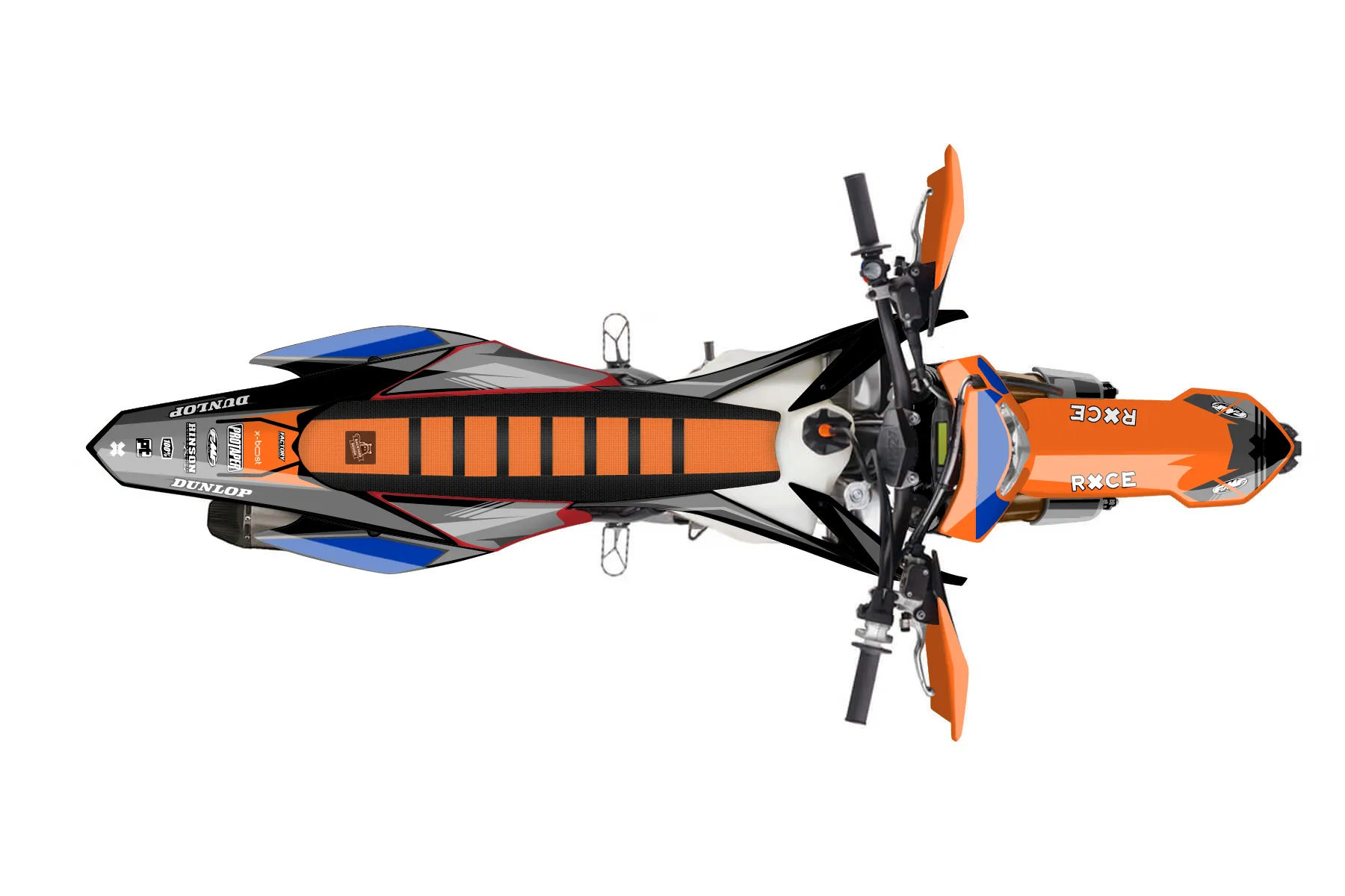«Ultimate» — готовый комплект графики серии Untucked для KTM Enduro Graphic Kit KTM EXC-F 450 2016. В комплекте: графика на бак и боковые облицовки, крылья (переднее и заднее), передний щиток, номерные таблички, защита вилки. Материал: ПВХ-винил 80 мкр с холодной ламинацией 300 мкр, общая толщина 380 мкр; покрытие глянцевое или матовое на выбор. Устойчив к UV-излучению, воде, бензину и мойке высокого давления. Клей акриловый на сольвентной основе — постоянный, для гибких пластиков. На простых поверхностях монтируется без нагрева; для сложных изгибов рекомендуем фен. Этот пресет можно заказать как есть или взять за основу в конструкторе: поменять цвета, добавить стартовый номер и свой бренд. Производство — 3–5 рабочих дней, доставка по России СДЭКом или Почтой, по СНГ — курьерскими службами.