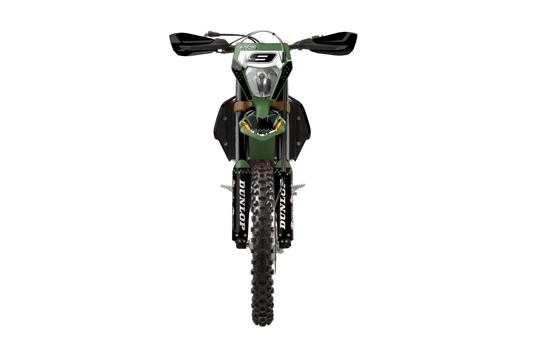 «Dub» — готовый комплект графики серии Staple для KTM Enduro Graphic Kit KTM EXC-F 450 2017. В комплекте: графика на бак и боковые облицовки, крылья (переднее и заднее), передний щиток, номерные таблички, защита вилки. Материал: ПВХ-винил 80 мкр с холодной ламинацией 300 мкр, общая толщина 380 мкр; покрытие глянцевое или матовое на выбор. Устойчив к UV-излучению, воде, бензину и мойке высокого давления. Клей акриловый на сольвентной основе — постоянный, для гибких пластиков. На простых поверхностях монтируется без нагрева; для сложных изгибов рекомендуем фен. Этот пресет можно заказать как есть или взять за основу в конструкторе: поменять цвета, добавить стартовый номер и свой бренд. Производство — 3–5 рабочих дней, доставка по России СДЭКом или Почтой, по СНГ — курьерскими службами.
