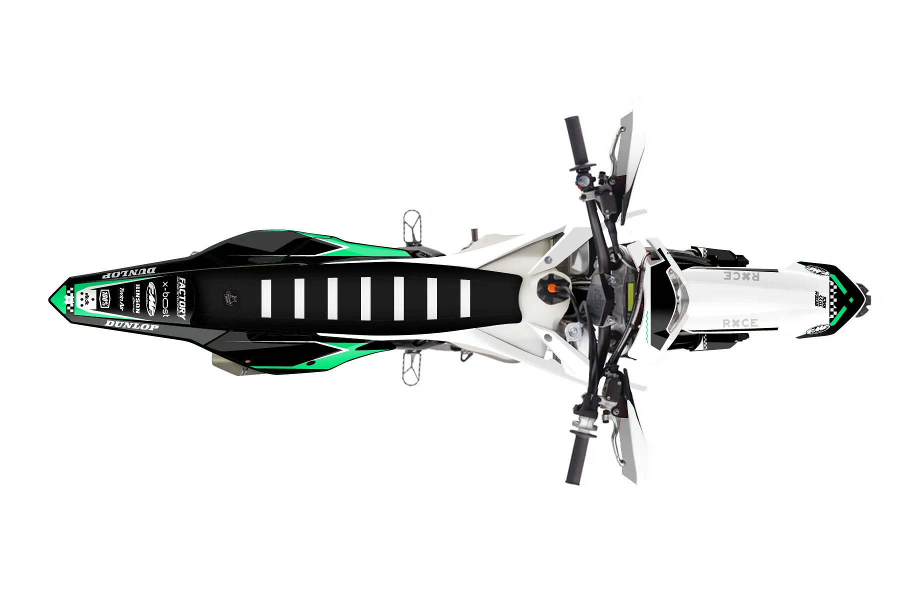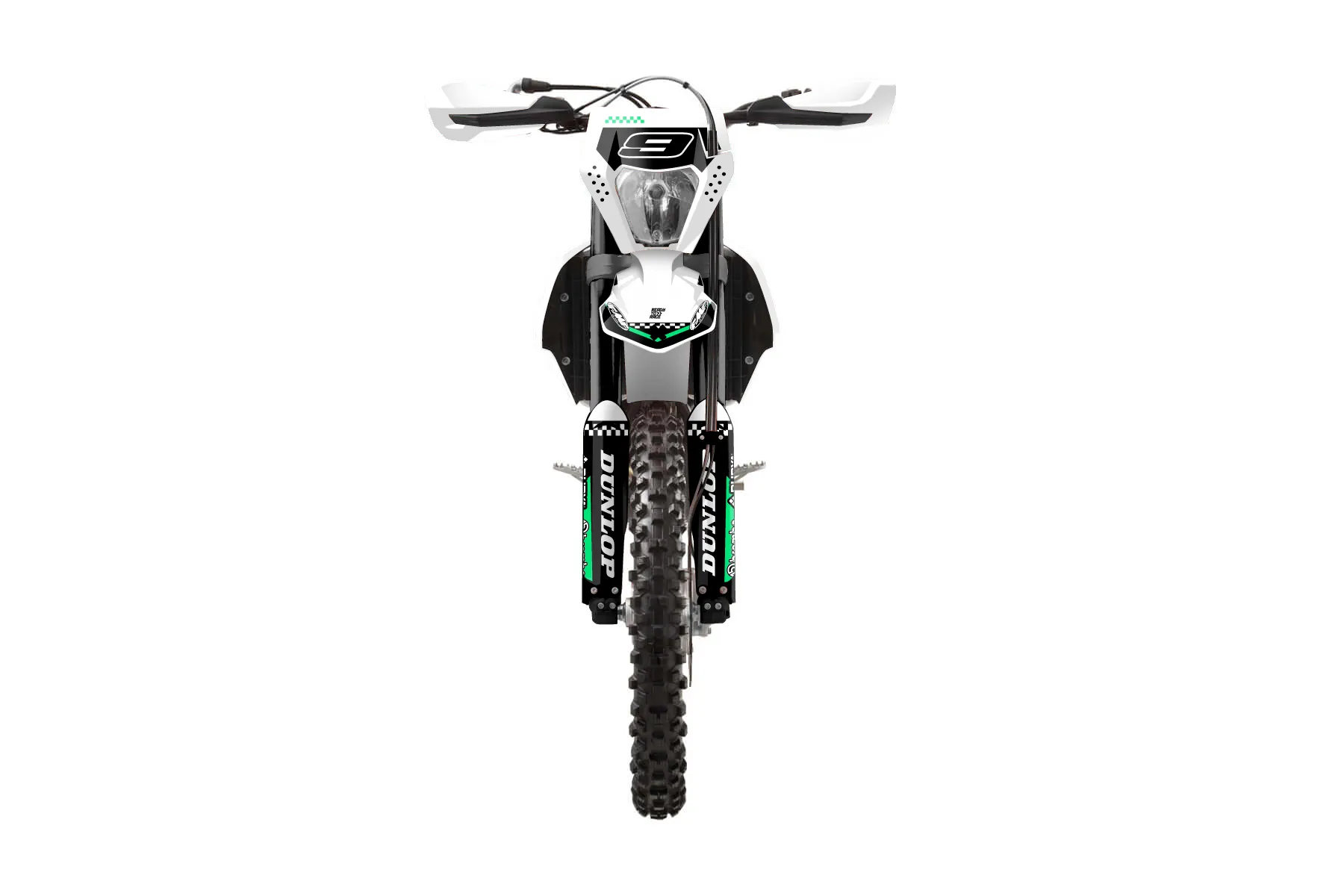 «Supervision» — готовый комплект графики серии Staple для KTM Enduro Graphic Kit KTM EXC-F 450 2017. В комплекте: графика на бак и боковые облицовки, крылья (переднее и заднее), передний щиток, номерные таблички, защита вилки. Материал: ПВХ-винил 80 мкр с холодной ламинацией 300 мкр, общая толщина 380 мкр; покрытие глянцевое или матовое на выбор. Устойчив к UV-излучению, воде, бензину и мойке высокого давления. Клей акриловый на сольвентной основе — постоянный, для гибких пластиков. На простых поверхностях монтируется без нагрева; для сложных изгибов рекомендуем фен. Этот пресет можно заказать как есть или взять за основу в конструкторе: поменять цвета, добавить стартовый номер и свой бренд. Производство — 3–5 рабочих дней, доставка по России СДЭКом или Почтой, по СНГ — курьерскими службами.