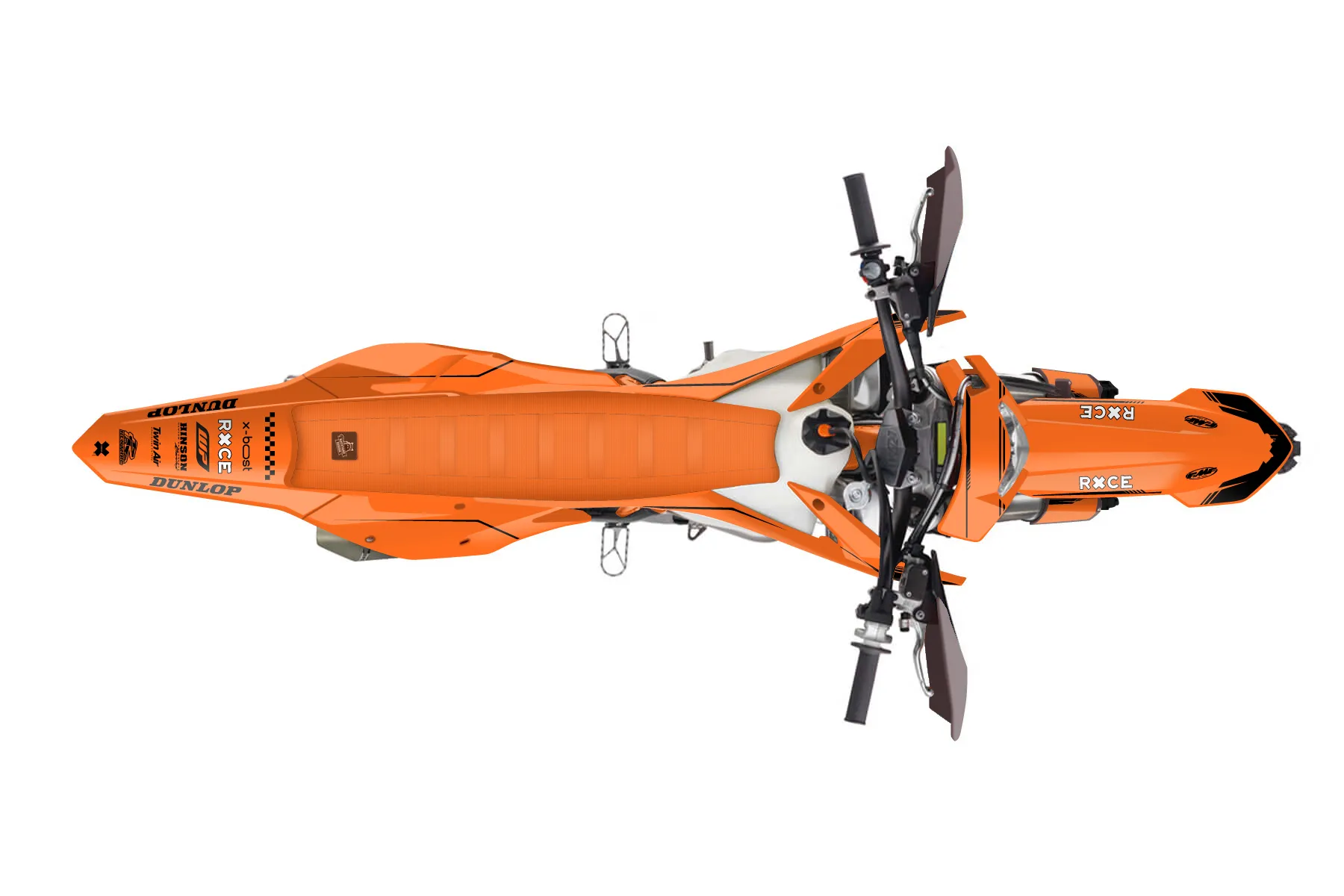 «Absolute» — готовый комплект графики серии Untucked для KTM Enduro Graphic Kit KTM EXC-F 450 2017. В комплекте: графика на бак и боковые облицовки, крылья (переднее и заднее), передний щиток, номерные таблички, защита вилки. Материал: ПВХ-винил 80 мкр с холодной ламинацией 300 мкр, общая толщина 380 мкр; покрытие глянцевое или матовое на выбор. Устойчив к UV-излучению, воде, бензину и мойке высокого давления. Клей акриловый на сольвентной основе — постоянный, для гибких пластиков. На простых поверхностях монтируется без нагрева; для сложных изгибов рекомендуем фен. Этот пресет можно заказать как есть или взять за основу в конструкторе: поменять цвета, добавить стартовый номер и свой бренд. Производство — 3–5 рабочих дней, доставка по России СДЭКом или Почтой, по СНГ — курьерскими службами.