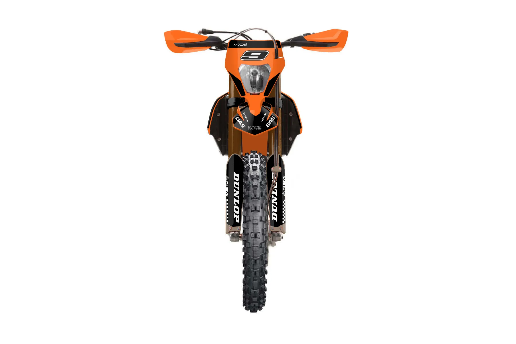 «Beyond» — готовый комплект графики серии Flow для KTM Enduro Graphic Kit KTM EXC-F 450 2020. В комплекте: графика на бак и боковые облицовки, крылья (переднее и заднее), передний щиток, номерные таблички, защита вилки. Материал: ПВХ-винил 80 мкр с холодной ламинацией 300 мкр, общая толщина 380 мкр; покрытие глянцевое или матовое на выбор. Устойчив к UV-излучению, воде, бензину и мойке высокого давления. Клей акриловый на сольвентной основе — постоянный, для гибких пластиков. На простых поверхностях монтируется без нагрева; для сложных изгибов рекомендуем фен. Этот пресет можно заказать как есть или взять за основу в конструкторе: поменять цвета, добавить стартовый номер и свой бренд. Производство — 3–5 рабочих дней, доставка по России СДЭКом или Почтой, по СНГ — курьерскими службами.