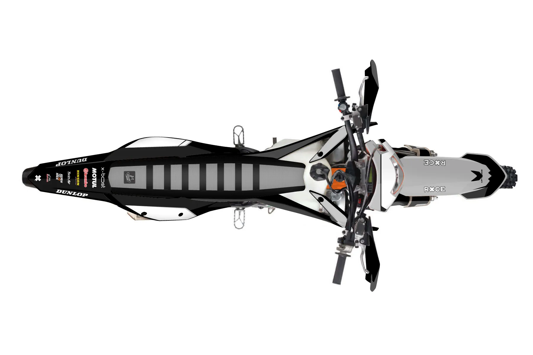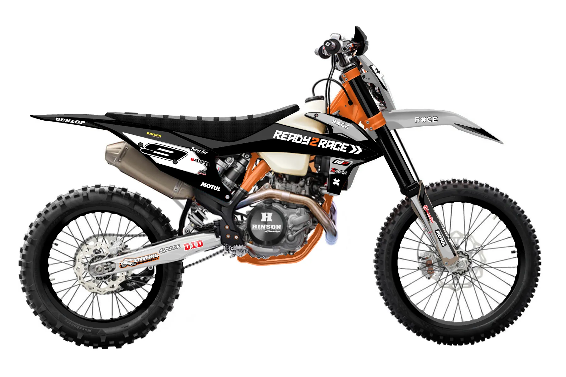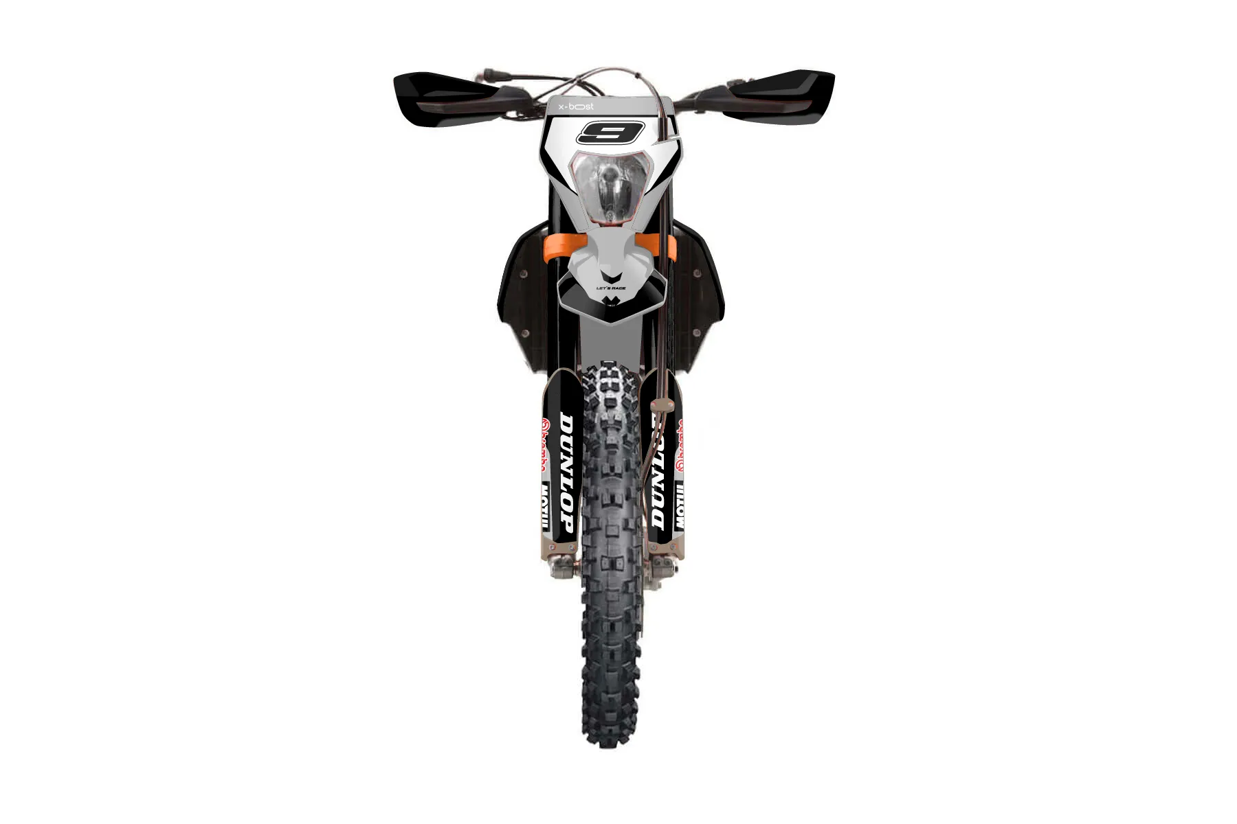 «Concepts» — готовый комплект графики серии Flow для KTM Enduro Graphic Kit KTM EXC-F 450 2020. В комплекте: графика на бак и боковые облицовки, крылья (переднее и заднее), передний щиток, номерные таблички, защита вилки. Материал: ПВХ-винил 80 мкр с холодной ламинацией 300 мкр, общая толщина 380 мкр; покрытие глянцевое или матовое на выбор. Устойчив к UV-излучению, воде, бензину и мойке высокого давления. Клей акриловый на сольвентной основе — постоянный, для гибких пластиков. На простых поверхностях монтируется без нагрева; для сложных изгибов рекомендуем фен. Этот пресет можно заказать как есть или взять за основу в конструкторе: поменять цвета, добавить стартовый номер и свой бренд. Производство — 3–5 рабочих дней, доставка по России СДЭКом или Почтой, по СНГ — курьерскими службами.