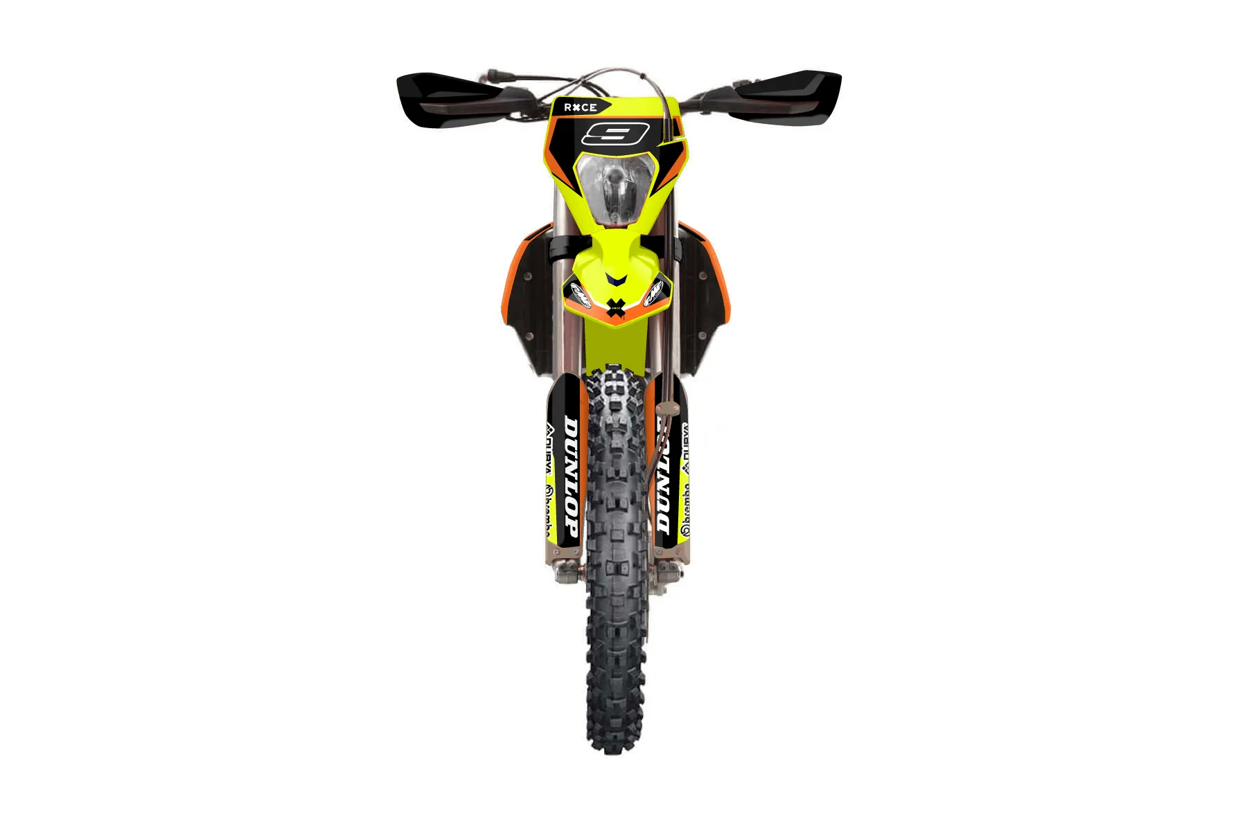 «Fluorescent» — готовый комплект графики серии Flow для KTM Enduro Graphic Kit KTM EXC-F 450 2020. В комплекте: графика на бак и боковые облицовки, крылья (переднее и заднее), передний щиток, номерные таблички, защита вилки. Материал: ПВХ-винил 80 мкр с холодной ламинацией 300 мкр, общая толщина 380 мкр; покрытие глянцевое или матовое на выбор. Устойчив к UV-излучению, воде, бензину и мойке высокого давления. Клей акриловый на сольвентной основе — постоянный, для гибких пластиков. На простых поверхностях монтируется без нагрева; для сложных изгибов рекомендуем фен. Этот пресет можно заказать как есть или взять за основу в конструкторе: поменять цвета, добавить стартовый номер и свой бренд. Производство — 3–5 рабочих дней, доставка по России СДЭКом или Почтой, по СНГ — курьерскими службами.