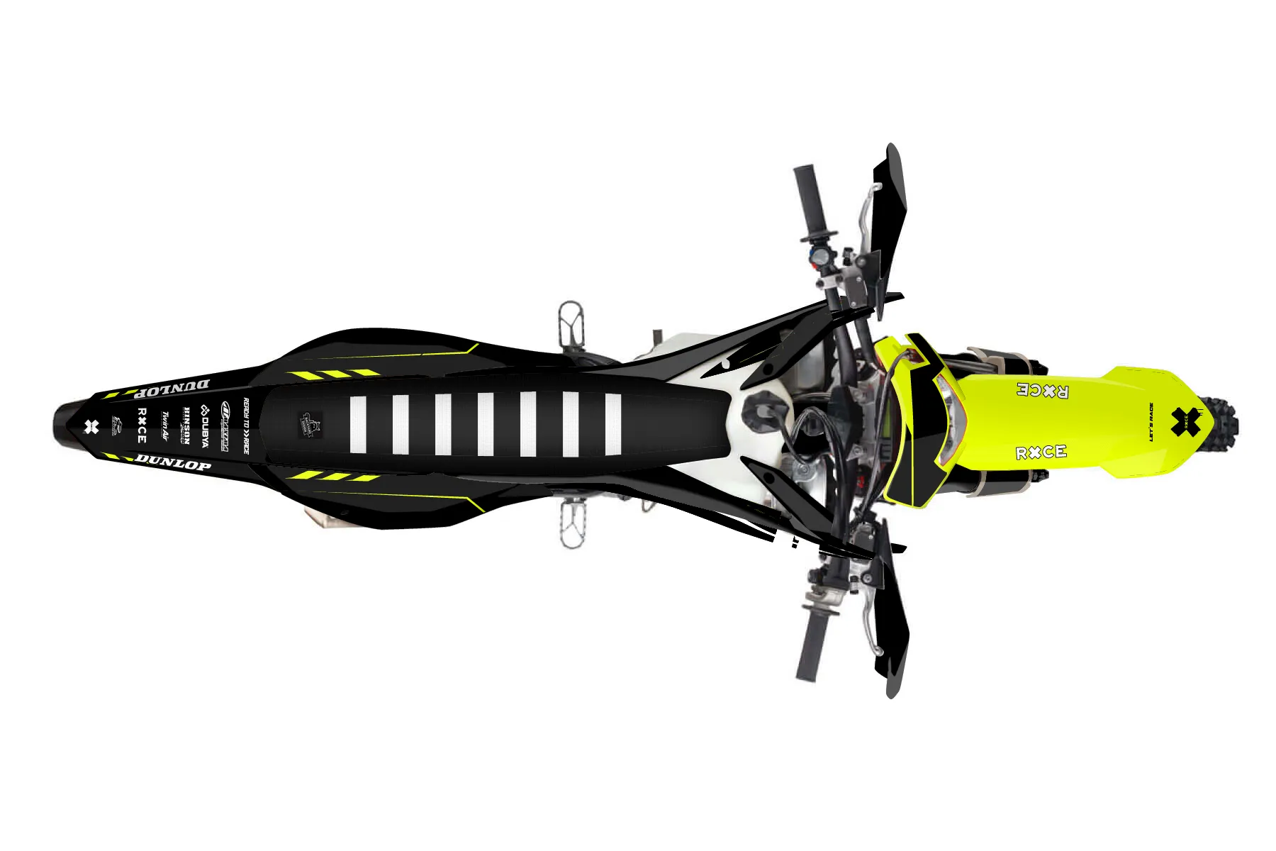 «Kitted Neon» — готовый комплект графики серии Maverick для KTM Enduro Graphic Kit KTM EXC-F 450 2020. В комплекте: графика на бак и боковые облицовки, крылья (переднее и заднее), передний щиток, номерные таблички, защита вилки. Материал: ПВХ-винил 80 мкр с холодной ламинацией 300 мкр, общая толщина 380 мкр; покрытие глянцевое или матовое на выбор. Устойчив к UV-излучению, воде, бензину и мойке высокого давления. Клей акриловый на сольвентной основе — постоянный, для гибких пластиков. На простых поверхностях монтируется без нагрева; для сложных изгибов рекомендуем фен. Этот пресет можно заказать как есть или взять за основу в конструкторе: поменять цвета, добавить стартовый номер и свой бренд. Производство — 3–5 рабочих дней, доставка по России СДЭКом или Почтой, по СНГ — курьерскими службами.