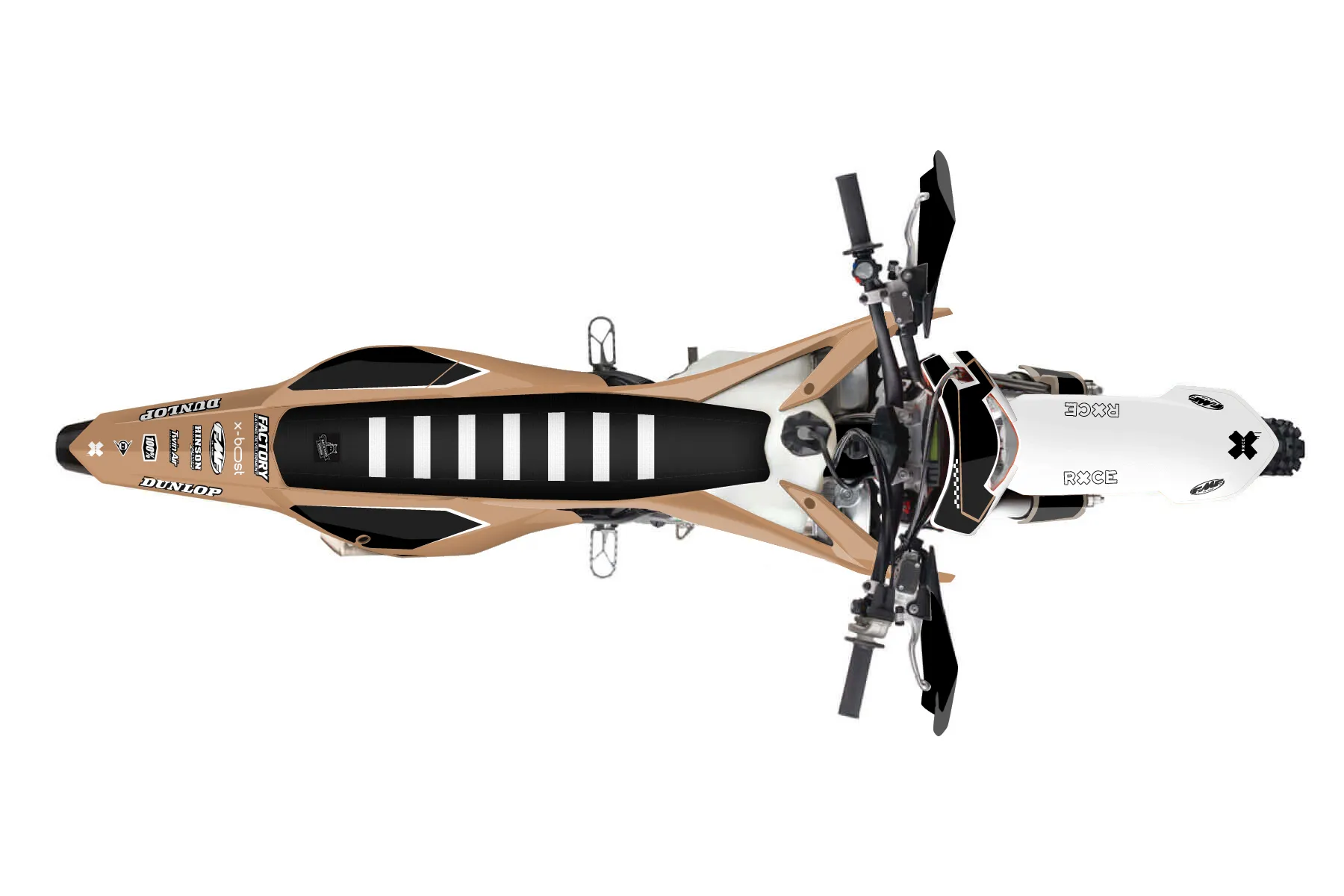 «Polite» — готовый комплект графики серии Staple для KTM Enduro Graphic Kit KTM EXC-F 450 2020. В комплекте: графика на бак и боковые облицовки, крылья (переднее и заднее), передний щиток, номерные таблички, защита вилки. Материал: ПВХ-винил 80 мкр с холодной ламинацией 300 мкр, общая толщина 380 мкр; покрытие глянцевое или матовое на выбор. Устойчив к UV-излучению, воде, бензину и мойке высокого давления. Клей акриловый на сольвентной основе — постоянный, для гибких пластиков. На простых поверхностях монтируется без нагрева; для сложных изгибов рекомендуем фен. Этот пресет можно заказать как есть или взять за основу в конструкторе: поменять цвета, добавить стартовый номер и свой бренд. Производство — 3–5 рабочих дней, доставка по России СДЭКом или Почтой, по СНГ — курьерскими службами.