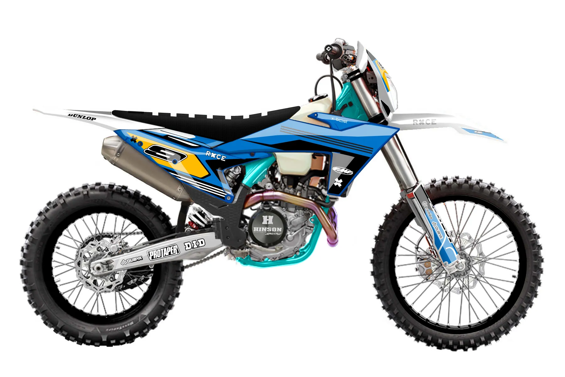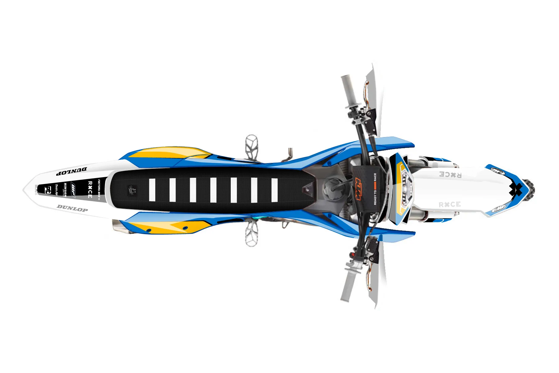 «All-Star» — готовый комплект графики серии Flow для KTM Enduro Graphic Kit KTM EXC-F 450 2024. В комплекте: графика на бак и боковые облицовки, крылья (переднее и заднее), передний щиток, номерные таблички, защита вилки. Материал: ПВХ-винил 80 мкр с холодной ламинацией 300 мкр, общая толщина 380 мкр; покрытие глянцевое или матовое на выбор. Устойчив к UV-излучению, воде, бензину и мойке высокого давления. Клей акриловый на сольвентной основе — постоянный, для гибких пластиков. На простых поверхностях монтируется без нагрева; для сложных изгибов рекомендуем фен. Этот пресет можно заказать как есть или взять за основу в конструкторе: поменять цвета, добавить стартовый номер и свой бренд. Производство — 3–5 рабочих дней, доставка по России СДЭКом или Почтой, по СНГ — курьерскими службами.