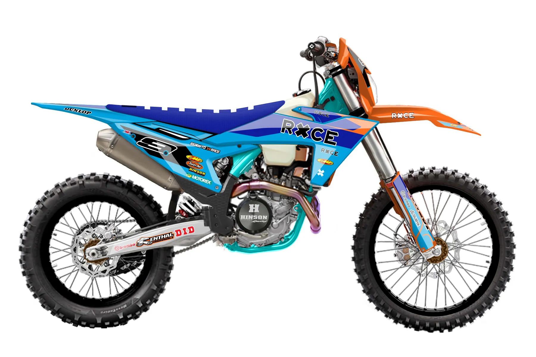 «Signature» — готовый комплект графики серии Flow для KTM Enduro Graphic Kit KTM EXC-F 450 2024. В комплекте: графика на бак и боковые облицовки, крылья (переднее и заднее), передний щиток, номерные таблички, защита вилки. Материал: ПВХ-винил 80 мкр с холодной ламинацией 300 мкр, общая толщина 380 мкр; покрытие глянцевое или матовое на выбор. Устойчив к UV-излучению, воде, бензину и мойке высокого давления. Клей акриловый на сольвентной основе — постоянный, для гибких пластиков. На простых поверхностях монтируется без нагрева; для сложных изгибов рекомендуем фен. Этот пресет можно заказать как есть или взять за основу в конструкторе: поменять цвета, добавить стартовый номер и свой бренд. Производство — 3–5 рабочих дней, доставка по России СДЭКом или Почтой, по СНГ — курьерскими службами.