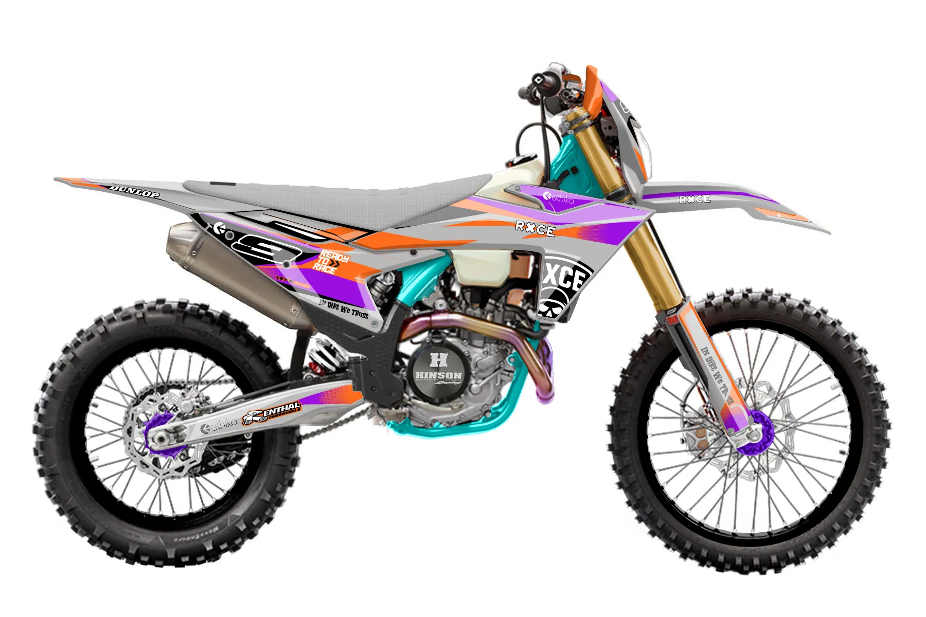 «Emphatic» — готовый комплект графики серии Fusion для KTM Enduro Graphic Kit KTM EXC-F 450 2024. В комплекте: графика на бак и боковые облицовки, крылья (переднее и заднее), передний щиток, номерные таблички, защита вилки. Материал: ПВХ-винил 80 мкр с холодной ламинацией 300 мкр, общая толщина 380 мкр; покрытие глянцевое или матовое на выбор. Устойчив к UV-излучению, воде, бензину и мойке высокого давления. Клей акриловый на сольвентной основе — постоянный, для гибких пластиков. На простых поверхностях монтируется без нагрева; для сложных изгибов рекомендуем фен. Этот пресет можно заказать как есть или взять за основу в конструкторе: поменять цвета, добавить стартовый номер и свой бренд. Производство — 3–5 рабочих дней, доставка по России СДЭКом или Почтой, по СНГ — курьерскими службами.