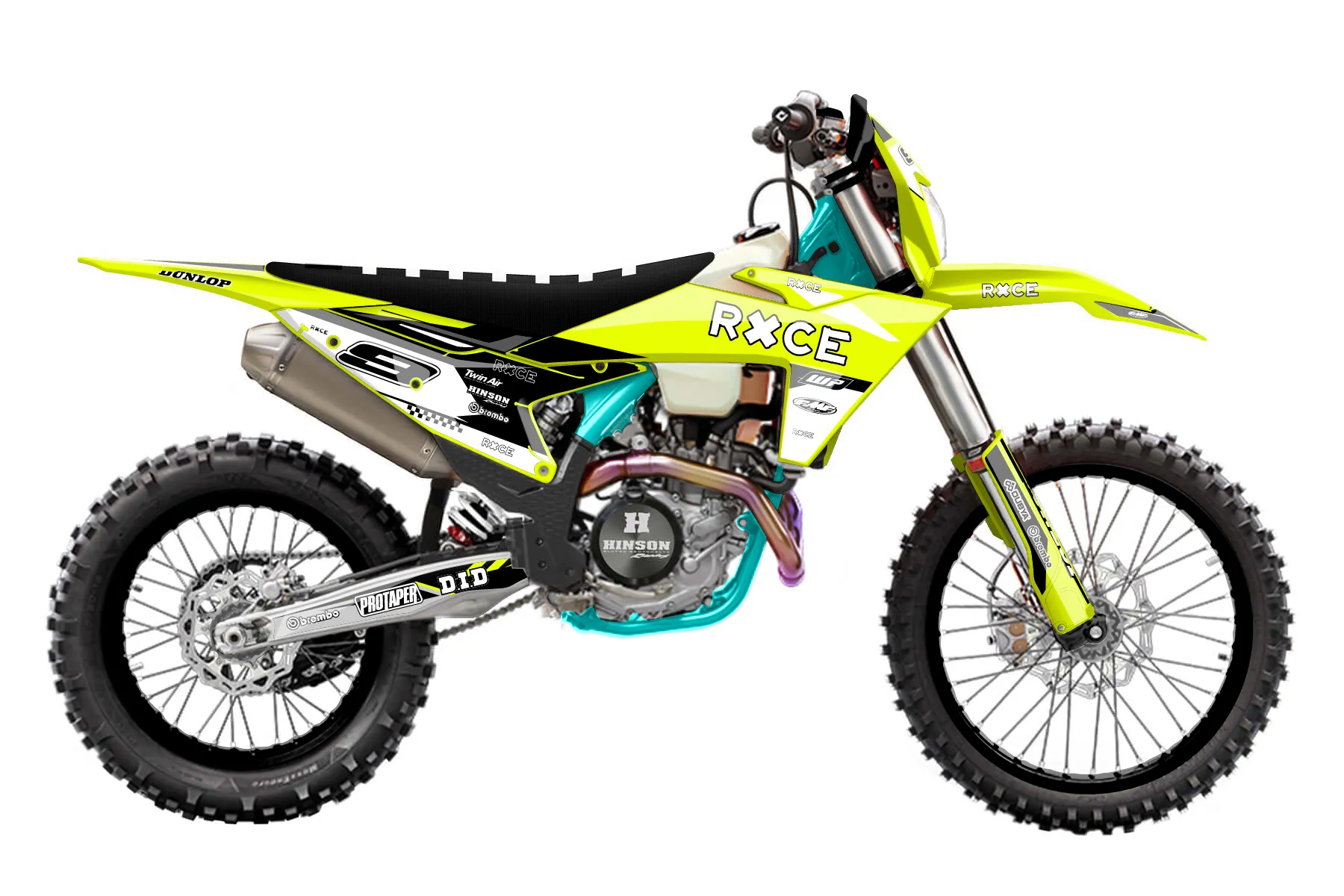 «Bright Neon» — готовый комплект графики серии Maverick для KTM Enduro Graphic Kit KTM EXC-F 450 2024. В комплекте: графика на бак и боковые облицовки, крылья (переднее и заднее), передний щиток, номерные таблички, защита вилки. Материал: ПВХ-винил 80 мкр с холодной ламинацией 300 мкр, общая толщина 380 мкр; покрытие глянцевое или матовое на выбор. Устойчив к UV-излучению, воде, бензину и мойке высокого давления. Клей акриловый на сольвентной основе — постоянный, для гибких пластиков. На простых поверхностях монтируется без нагрева; для сложных изгибов рекомендуем фен. Этот пресет можно заказать как есть или взять за основу в конструкторе: поменять цвета, добавить стартовый номер и свой бренд. Производство — 3–5 рабочих дней, доставка по России СДЭКом или Почтой, по СНГ — курьерскими службами.