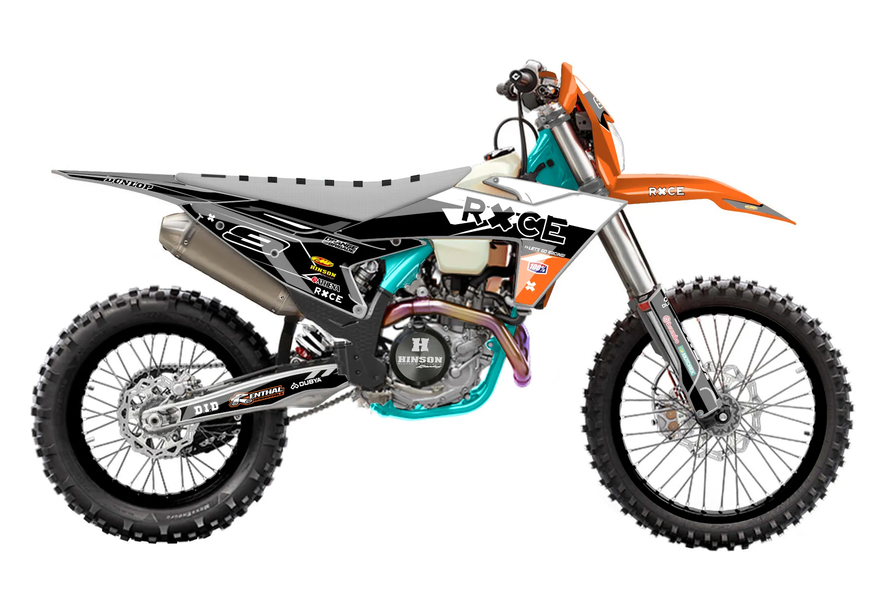 «Eleven» — готовый комплект графики серии Maverick для KTM Enduro Graphic Kit KTM EXC-F 450 2024. В комплекте: графика на бак и боковые облицовки, крылья (переднее и заднее), передний щиток, номерные таблички, защита вилки. Материал: ПВХ-винил 80 мкр с холодной ламинацией 300 мкр, общая толщина 380 мкр; покрытие глянцевое или матовое на выбор. Устойчив к UV-излучению, воде, бензину и мойке высокого давления. Клей акриловый на сольвентной основе — постоянный, для гибких пластиков. На простых поверхностях монтируется без нагрева; для сложных изгибов рекомендуем фен. Этот пресет можно заказать как есть или взять за основу в конструкторе: поменять цвета, добавить стартовый номер и свой бренд. Производство — 3–5 рабочих дней, доставка по России СДЭКом или Почтой, по СНГ — курьерскими службами.