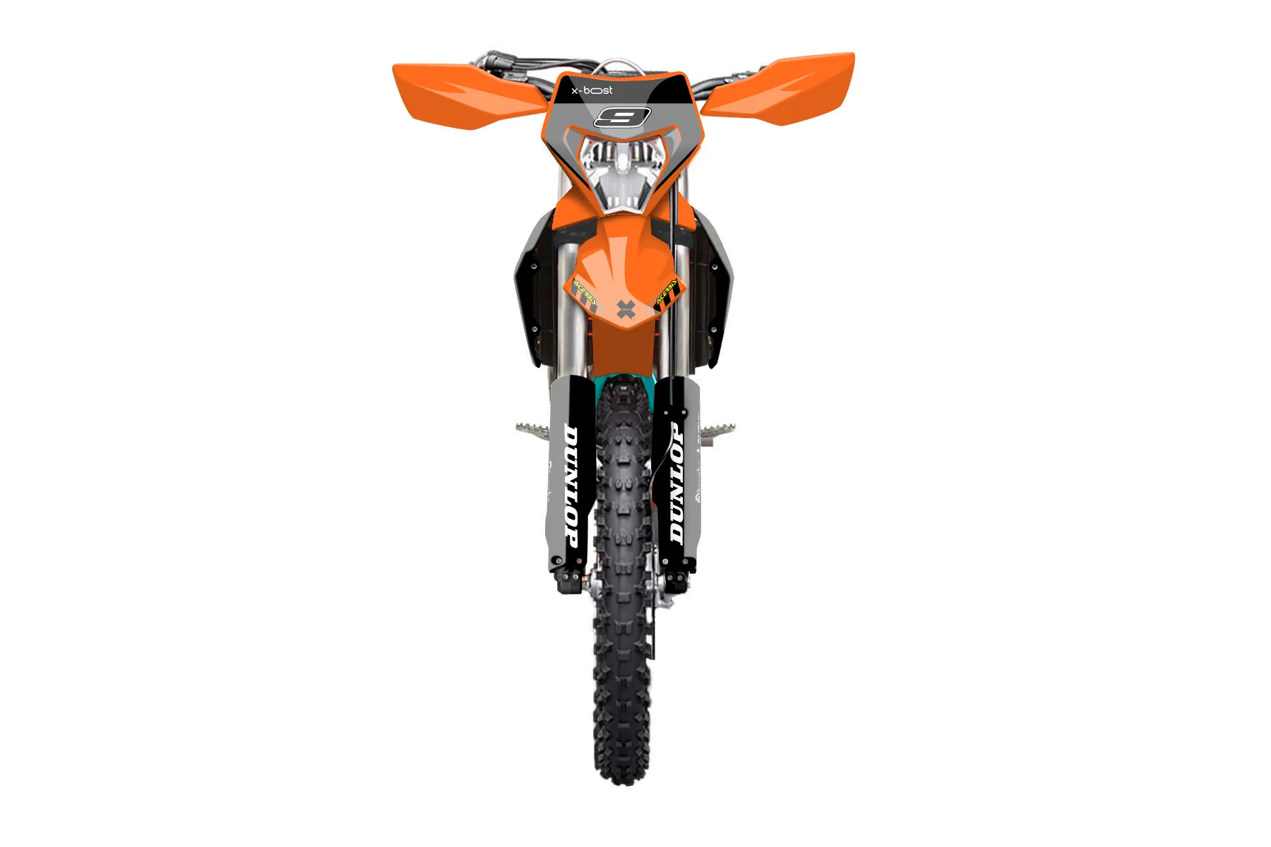 «Loose» — готовый комплект графики серии Maverick для KTM Enduro Graphic Kit KTM EXC-F 450 2024. В комплекте: графика на бак и боковые облицовки, крылья (переднее и заднее), передний щиток, номерные таблички, защита вилки. Материал: ПВХ-винил 80 мкр с холодной ламинацией 300 мкр, общая толщина 380 мкр; покрытие глянцевое или матовое на выбор. Устойчив к UV-излучению, воде, бензину и мойке высокого давления. Клей акриловый на сольвентной основе — постоянный, для гибких пластиков. На простых поверхностях монтируется без нагрева; для сложных изгибов рекомендуем фен. Этот пресет можно заказать как есть или взять за основу в конструкторе: поменять цвета, добавить стартовый номер и свой бренд. Производство — 3–5 рабочих дней, доставка по России СДЭКом или Почтой, по СНГ — курьерскими службами.