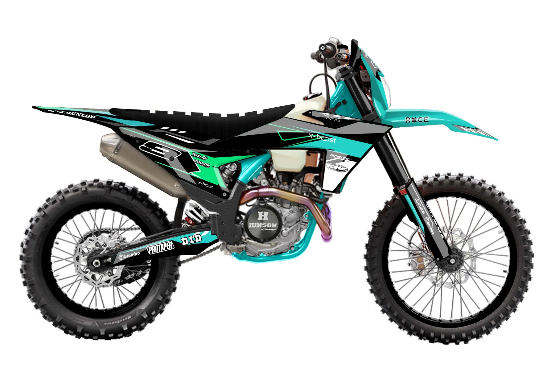 «Refuse» — готовый комплект графики серии Maverick для KTM Enduro Graphic Kit KTM EXC-F 450 2024. В комплекте: графика на бак и боковые облицовки, крылья (переднее и заднее), передний щиток, номерные таблички, защита вилки. Материал: ПВХ-винил 80 мкр с холодной ламинацией 300 мкр, общая толщина 380 мкр; покрытие глянцевое или матовое на выбор. Устойчив к UV-излучению, воде, бензину и мойке высокого давления. Клей акриловый на сольвентной основе — постоянный, для гибких пластиков. На простых поверхностях монтируется без нагрева; для сложных изгибов рекомендуем фен. Этот пресет можно заказать как есть или взять за основу в конструкторе: поменять цвета, добавить стартовый номер и свой бренд. Производство — 3–5 рабочих дней, доставка по России СДЭКом или Почтой, по СНГ — курьерскими службами.