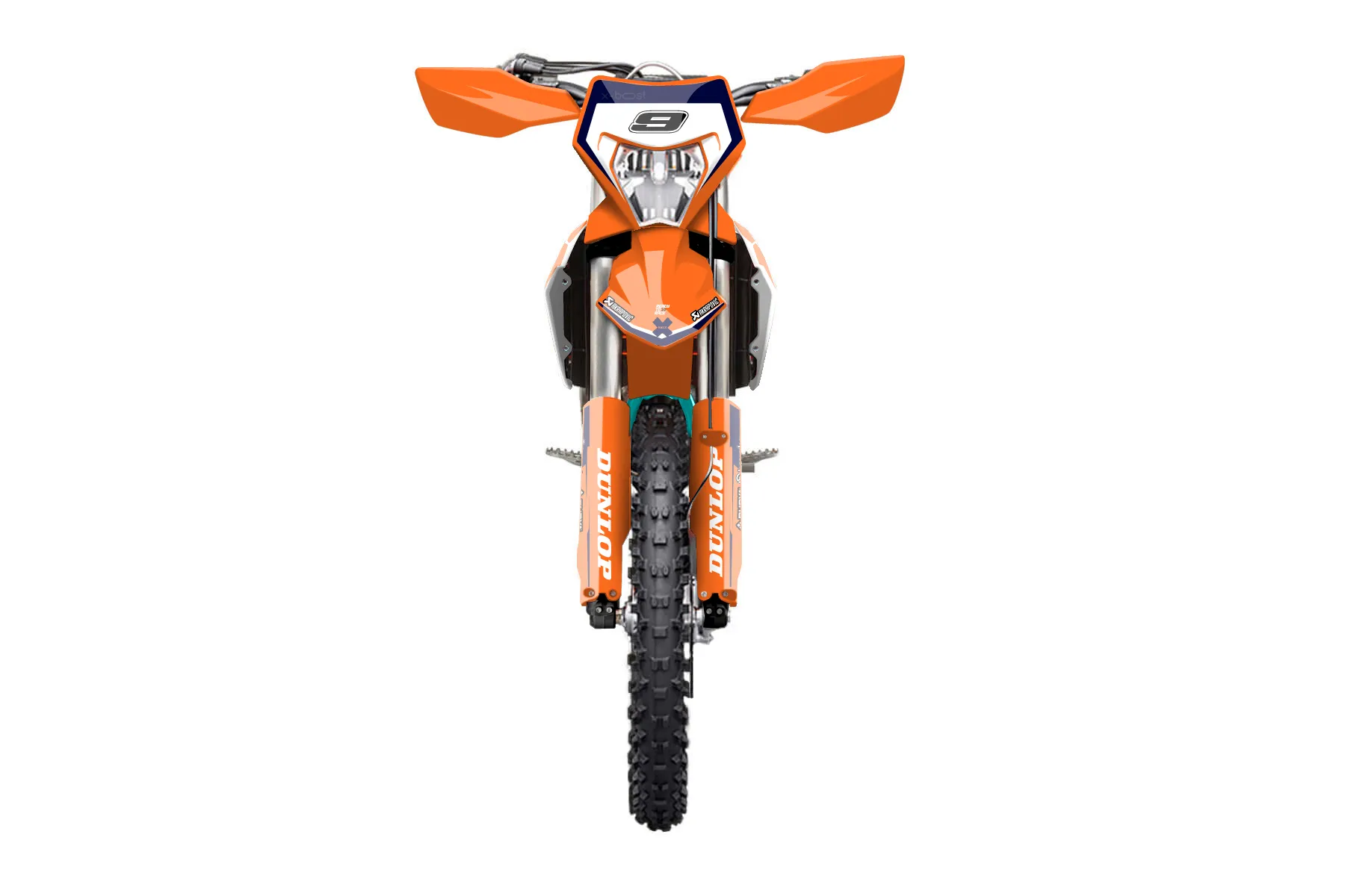 «Swoosh» — готовый комплект графики серии Staple для KTM Enduro Graphic Kit KTM EXC-F 450 2024. В комплекте: графика на бак и боковые облицовки, крылья (переднее и заднее), передний щиток, номерные таблички, защита вилки. Материал: ПВХ-винил 80 мкр с холодной ламинацией 300 мкр, общая толщина 380 мкр; покрытие глянцевое или матовое на выбор. Устойчив к UV-излучению, воде, бензину и мойке высокого давления. Клей акриловый на сольвентной основе — постоянный, для гибких пластиков. На простых поверхностях монтируется без нагрева; для сложных изгибов рекомендуем фен. Этот пресет можно заказать как есть или взять за основу в конструкторе: поменять цвета, добавить стартовый номер и свой бренд. Производство — 3–5 рабочих дней, доставка по России СДЭКом или Почтой, по СНГ — курьерскими службами.