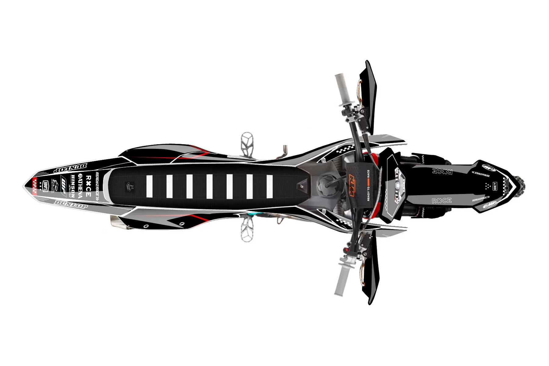«Tack» — готовый комплект графики серии Staple для KTM Enduro Graphic Kit KTM EXC-F 450 2024. В комплекте: графика на бак и боковые облицовки, крылья (переднее и заднее), передний щиток, номерные таблички, защита вилки. Материал: ПВХ-винил 80 мкр с холодной ламинацией 300 мкр, общая толщина 380 мкр; покрытие глянцевое или матовое на выбор. Устойчив к UV-излучению, воде, бензину и мойке высокого давления. Клей акриловый на сольвентной основе — постоянный, для гибких пластиков. На простых поверхностях монтируется без нагрева; для сложных изгибов рекомендуем фен. Этот пресет можно заказать как есть или взять за основу в конструкторе: поменять цвета, добавить стартовый номер и свой бренд. Производство — 3–5 рабочих дней, доставка по России СДЭКом или Почтой, по СНГ — курьерскими службами.