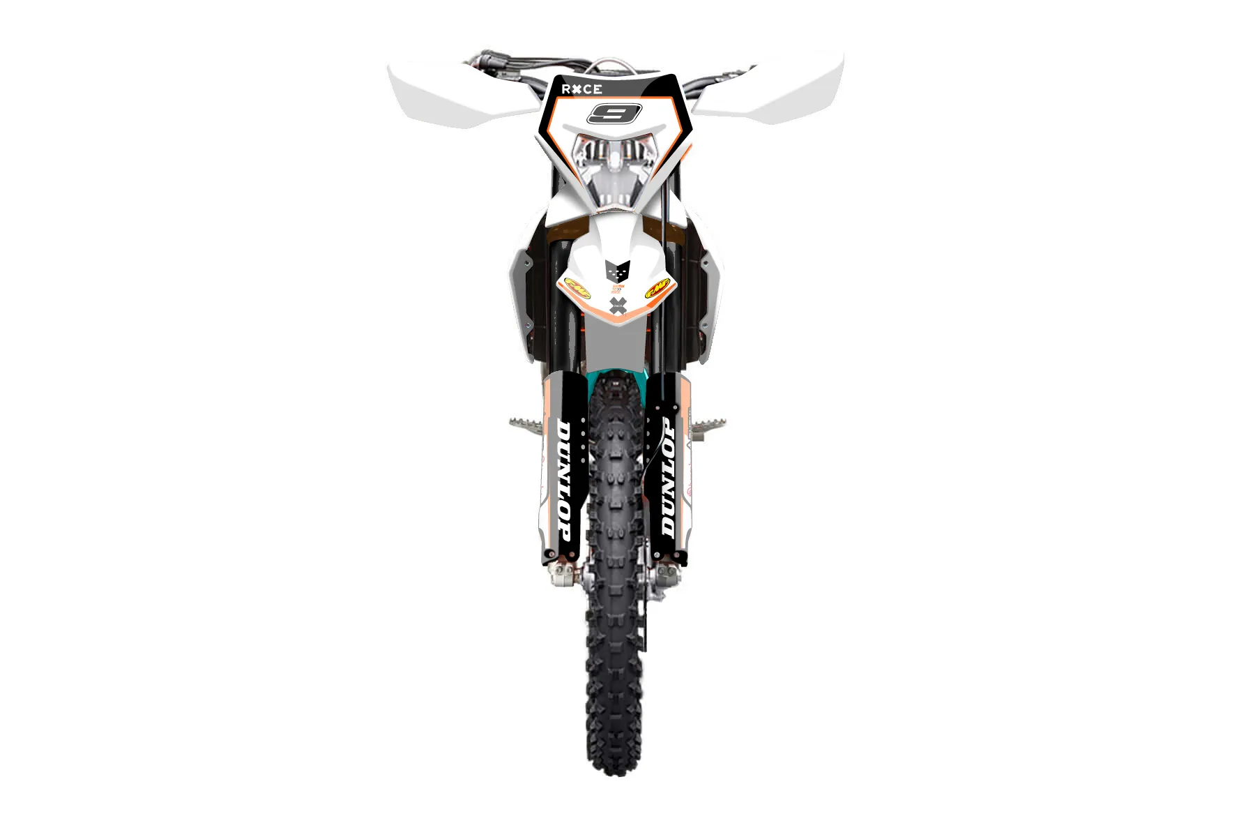 «Tilled» — готовый комплект графики серии Staple для KTM Enduro Graphic Kit KTM EXC-F 450 2024. В комплекте: графика на бак и боковые облицовки, крылья (переднее и заднее), передний щиток, номерные таблички, защита вилки. Материал: ПВХ-винил 80 мкр с холодной ламинацией 300 мкр, общая толщина 380 мкр; покрытие глянцевое или матовое на выбор. Устойчив к UV-излучению, воде, бензину и мойке высокого давления. Клей акриловый на сольвентной основе — постоянный, для гибких пластиков. На простых поверхностях монтируется без нагрева; для сложных изгибов рекомендуем фен. Этот пресет можно заказать как есть или взять за основу в конструкторе: поменять цвета, добавить стартовый номер и свой бренд. Производство — 3–5 рабочих дней, доставка по России СДЭКом или Почтой, по СНГ — курьерскими службами.