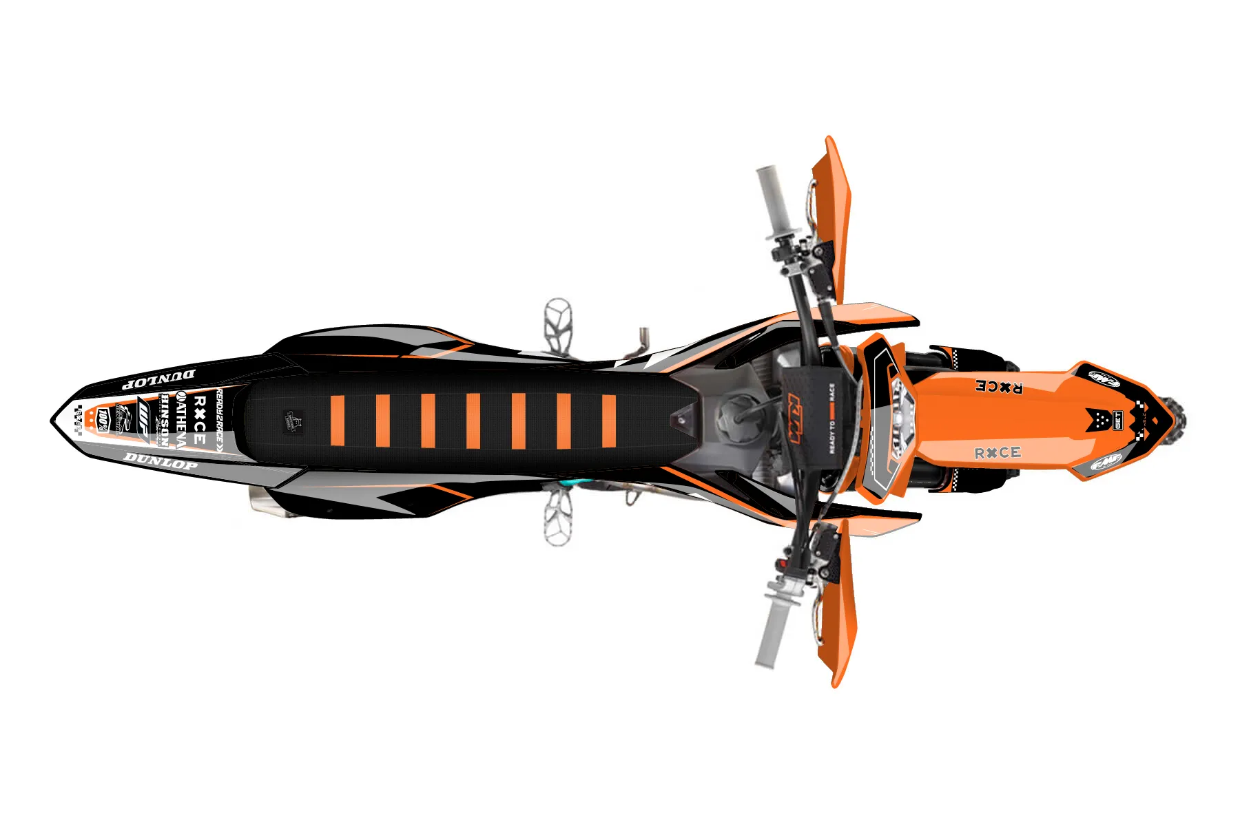 «Zebra» — готовый комплект графики серии Staple для KTM Enduro Graphic Kit KTM EXC-F 450 2024. В комплекте: графика на бак и боковые облицовки, крылья (переднее и заднее), передний щиток, номерные таблички, защита вилки. Материал: ПВХ-винил 80 мкр с холодной ламинацией 300 мкр, общая толщина 380 мкр; покрытие глянцевое или матовое на выбор. Устойчив к UV-излучению, воде, бензину и мойке высокого давления. Клей акриловый на сольвентной основе — постоянный, для гибких пластиков. На простых поверхностях монтируется без нагрева; для сложных изгибов рекомендуем фен. Этот пресет можно заказать как есть или взять за основу в конструкторе: поменять цвета, добавить стартовый номер и свой бренд. Производство — 3–5 рабочих дней, доставка по России СДЭКом или Почтой, по СНГ — курьерскими службами.