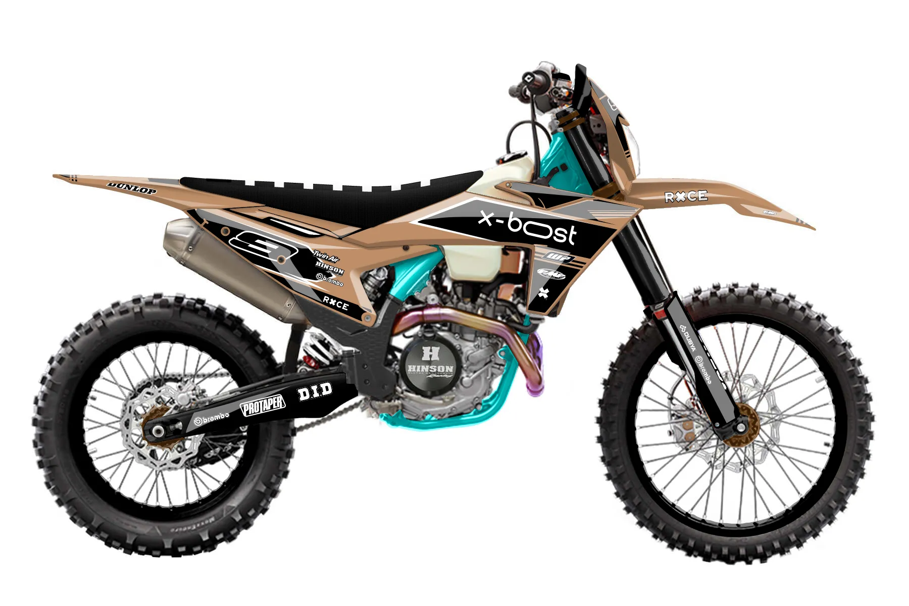 «Entire» — готовый комплект графики серии Untucked для KTM Enduro Graphic Kit KTM EXC-F 450 2024. В комплекте: графика на бак и боковые облицовки, крылья (переднее и заднее), передний щиток, номерные таблички, защита вилки. Материал: ПВХ-винил 80 мкр с холодной ламинацией 300 мкр, общая толщина 380 мкр; покрытие глянцевое или матовое на выбор. Устойчив к UV-излучению, воде, бензину и мойке высокого давления. Клей акриловый на сольвентной основе — постоянный, для гибких пластиков. На простых поверхностях монтируется без нагрева; для сложных изгибов рекомендуем фен. Этот пресет можно заказать как есть или взять за основу в конструкторе: поменять цвета, добавить стартовый номер и свой бренд. Производство — 3–5 рабочих дней, доставка по России СДЭКом или Почтой, по СНГ — курьерскими службами.