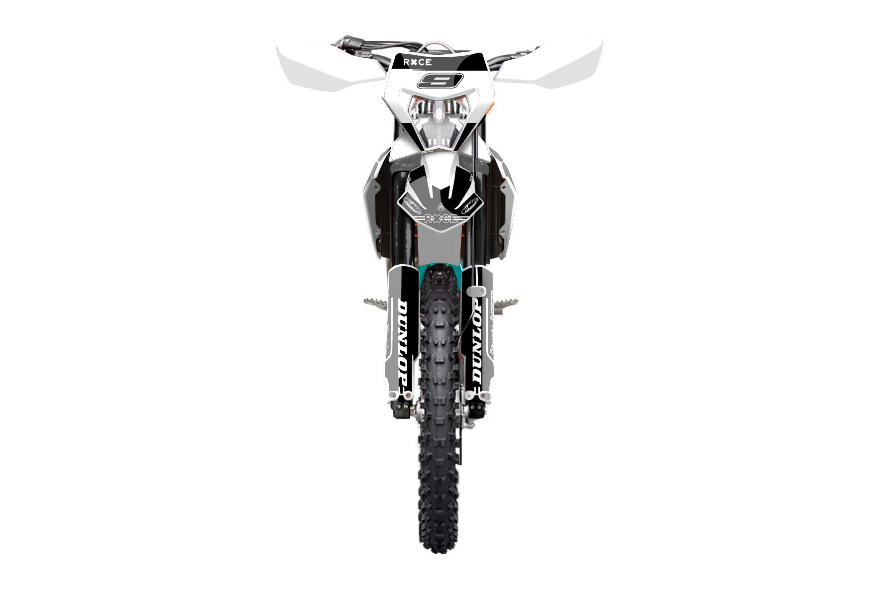 «Nifty» — готовый комплект графики серии Untucked для KTM Enduro Graphic Kit KTM EXC-F 450 2024. В комплекте: графика на бак и боковые облицовки, крылья (переднее и заднее), передний щиток, номерные таблички, защита вилки. Материал: ПВХ-винил 80 мкр с холодной ламинацией 300 мкр, общая толщина 380 мкр; покрытие глянцевое или матовое на выбор. Устойчив к UV-излучению, воде, бензину и мойке высокого давления. Клей акриловый на сольвентной основе — постоянный, для гибких пластиков. На простых поверхностях монтируется без нагрева; для сложных изгибов рекомендуем фен. Этот пресет можно заказать как есть или взять за основу в конструкторе: поменять цвета, добавить стартовый номер и свой бренд. Производство — 3–5 рабочих дней, доставка по России СДЭКом или Почтой, по СНГ — курьерскими службами.