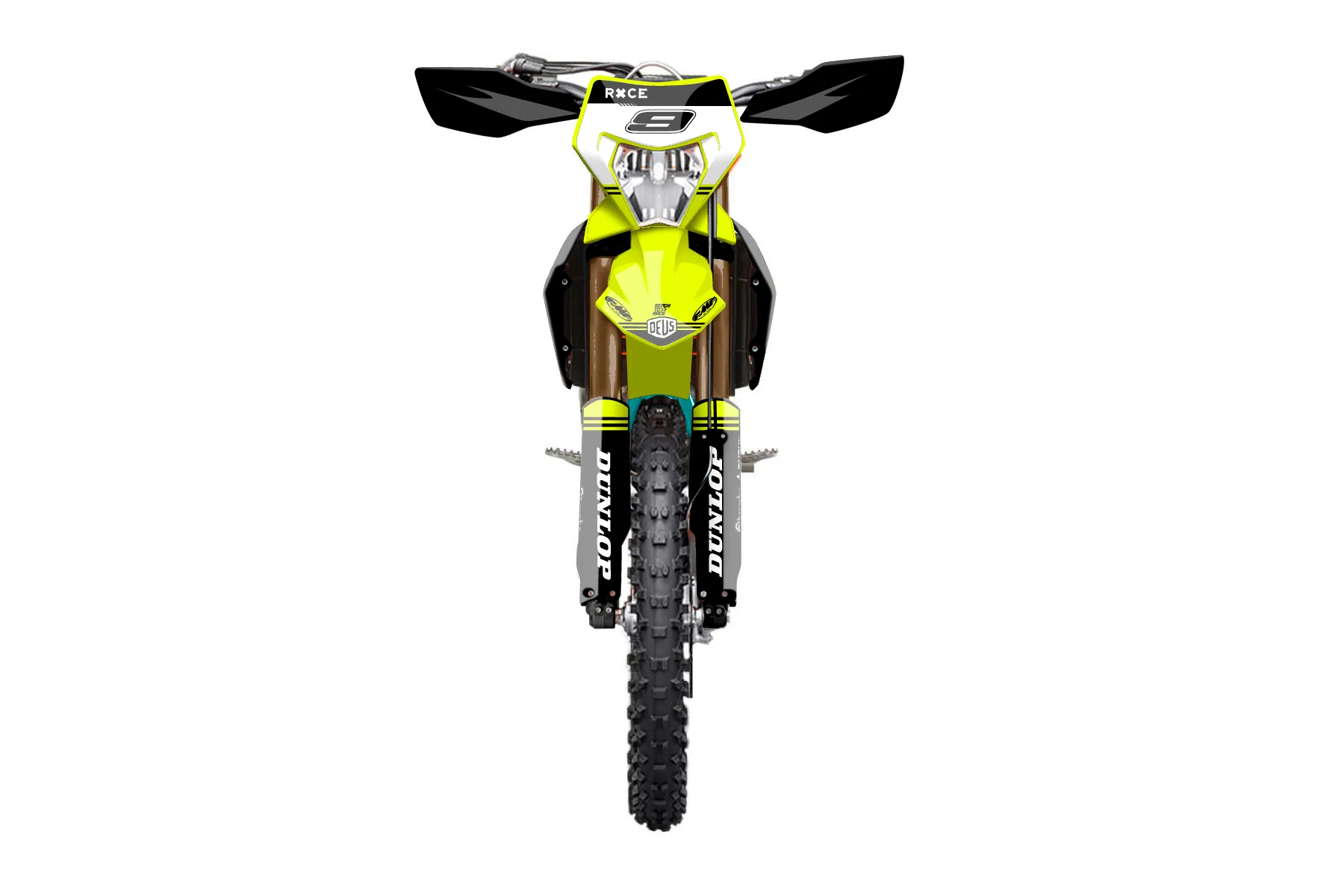 «Ride Neon» — готовый комплект графики серии Untucked для KTM Enduro Graphic Kit KTM EXC-F 450 2024. В комплекте: графика на бак и боковые облицовки, крылья (переднее и заднее), передний щиток, номерные таблички, защита вилки. Материал: ПВХ-винил 80 мкр с холодной ламинацией 300 мкр, общая толщина 380 мкр; покрытие глянцевое или матовое на выбор. Устойчив к UV-излучению, воде, бензину и мойке высокого давления. Клей акриловый на сольвентной основе — постоянный, для гибких пластиков. На простых поверхностях монтируется без нагрева; для сложных изгибов рекомендуем фен. Этот пресет можно заказать как есть или взять за основу в конструкторе: поменять цвета, добавить стартовый номер и свой бренд. Производство — 3–5 рабочих дней, доставка по России СДЭКом или Почтой, по СНГ — курьерскими службами.