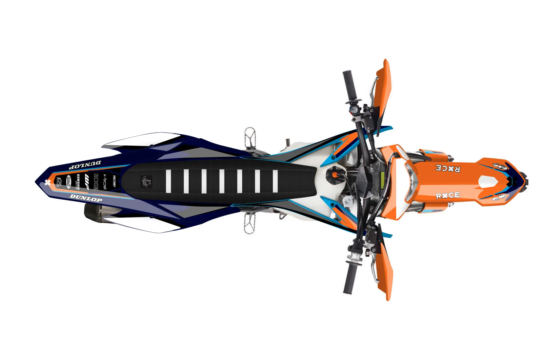 «Meta» — готовый комплект графики серии Flow для KTM Enduro Graphic Kit KTM EXC-F 500 2014. В комплекте: графика на бак и боковые облицовки, крылья (переднее и заднее), передний щиток, номерные таблички, защита вилки. Материал: ПВХ-винил 80 мкр с холодной ламинацией 300 мкр, общая толщина 380 мкр; покрытие глянцевое или матовое на выбор. Устойчив к UV-излучению, воде, бензину и мойке высокого давления. Клей акриловый на сольвентной основе — постоянный, для гибких пластиков. На простых поверхностях монтируется без нагрева; для сложных изгибов рекомендуем фен. Этот пресет можно заказать как есть или взять за основу в конструкторе: поменять цвета, добавить стартовый номер и свой бренд. Производство — 3–5 рабочих дней, доставка по России СДЭКом или Почтой, по СНГ — курьерскими службами.