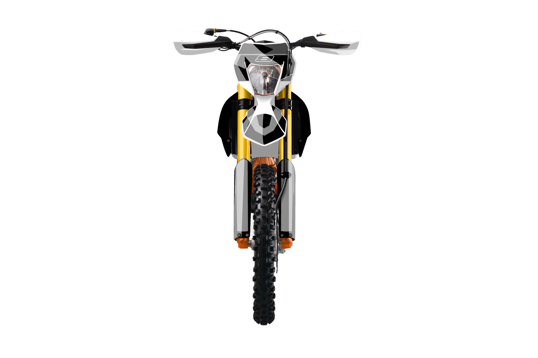 «SprSonik_1» — готовый комплект графики серии Flow для KTM Enduro Graphic Kit KTM EXC-F 500 2014. В комплекте: графика на бак и боковые облицовки, крылья (переднее и заднее), передний щиток, номерные таблички, защита вилки. Материал: ПВХ-винил 80 мкр с холодной ламинацией 300 мкр, общая толщина 380 мкр; покрытие глянцевое или матовое на выбор. Устойчив к UV-излучению, воде, бензину и мойке высокого давления. Клей акриловый на сольвентной основе — постоянный, для гибких пластиков. На простых поверхностях монтируется без нагрева; для сложных изгибов рекомендуем фен. Этот пресет можно заказать как есть или взять за основу в конструкторе: поменять цвета, добавить стартовый номер и свой бренд. Производство — 3–5 рабочих дней, доставка по России СДЭКом или Почтой, по СНГ — курьерскими службами.