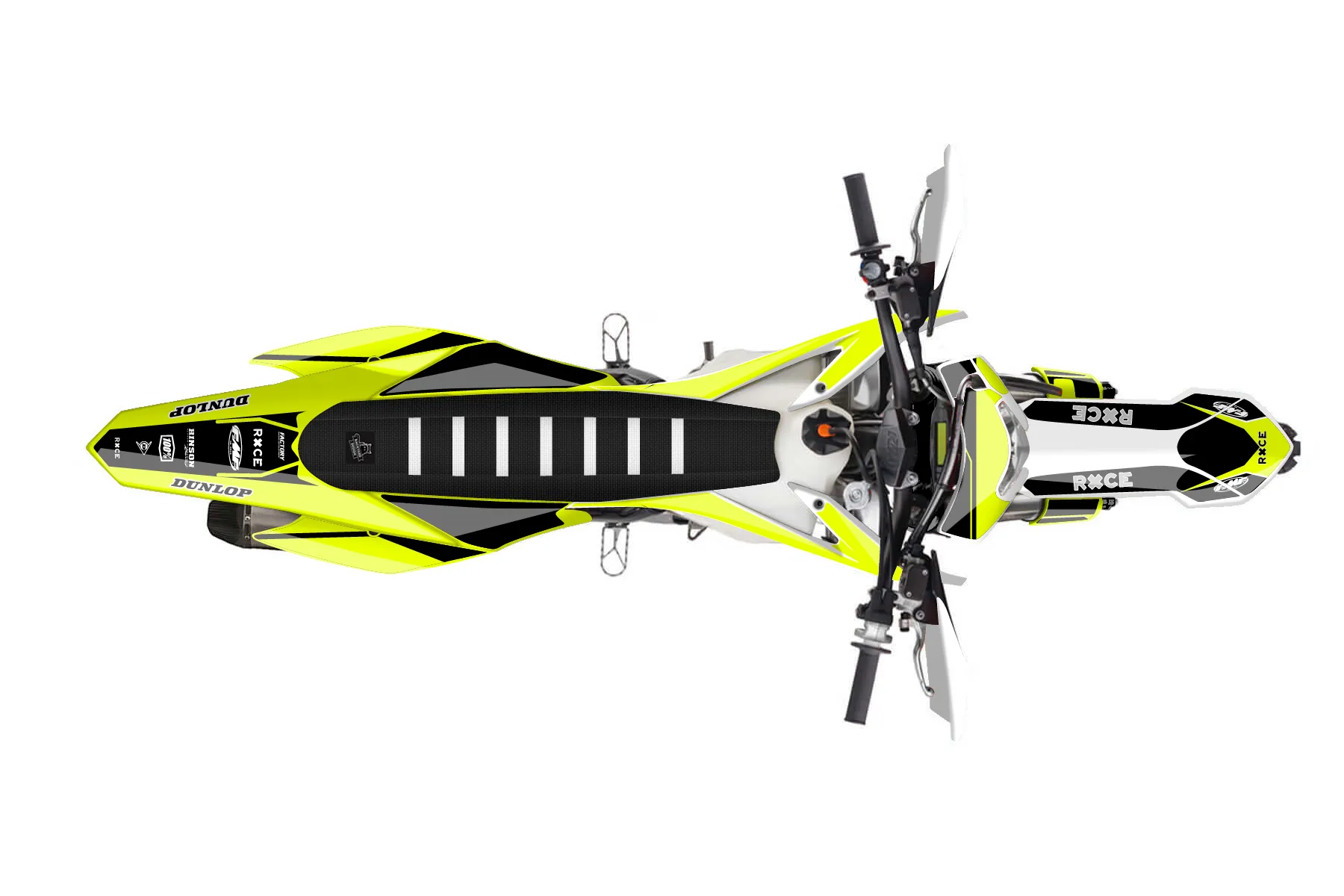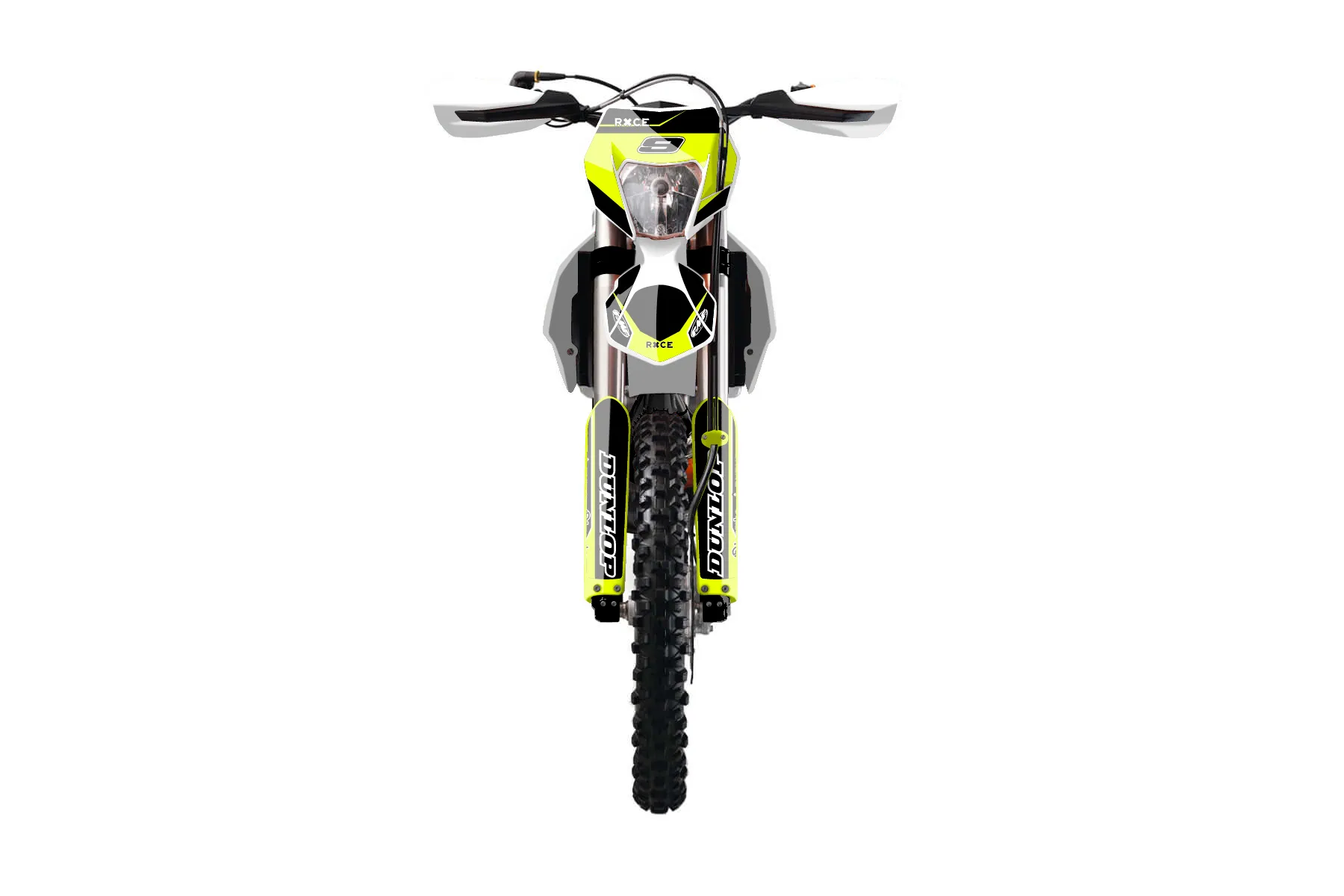 «Ryder Neon» — готовый комплект графики серии Maverick для KTM Enduro Graphic Kit KTM EXC-F 500 2014. В комплекте: графика на бак и боковые облицовки, крылья (переднее и заднее), передний щиток, номерные таблички, защита вилки. Материал: ПВХ-винил 80 мкр с холодной ламинацией 300 мкр, общая толщина 380 мкр; покрытие глянцевое или матовое на выбор. Устойчив к UV-излучению, воде, бензину и мойке высокого давления. Клей акриловый на сольвентной основе — постоянный, для гибких пластиков. На простых поверхностях монтируется без нагрева; для сложных изгибов рекомендуем фен. Этот пресет можно заказать как есть или взять за основу в конструкторе: поменять цвета, добавить стартовый номер и свой бренд. Производство — 3–5 рабочих дней, доставка по России СДЭКом или Почтой, по СНГ — курьерскими службами.